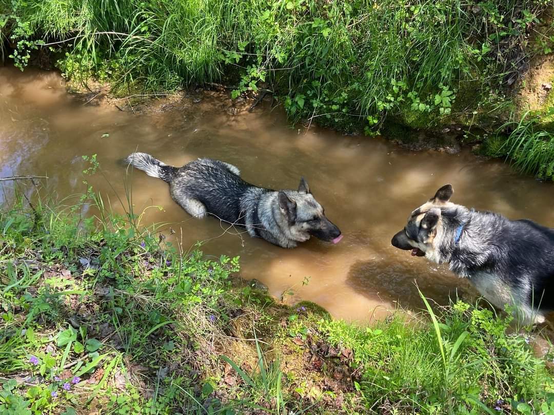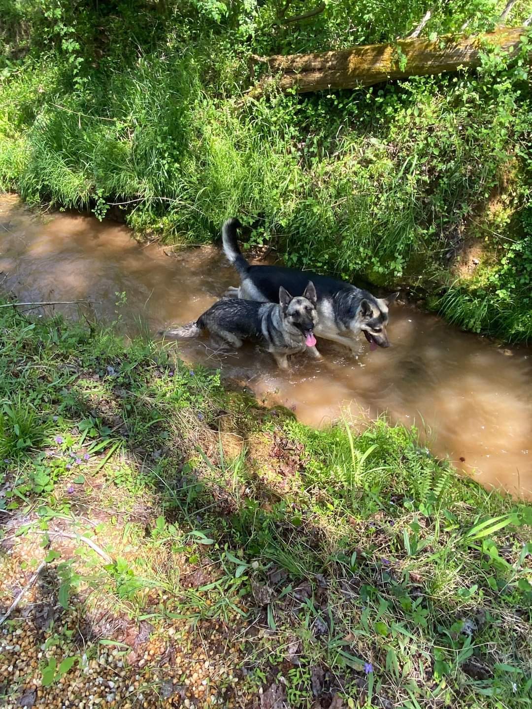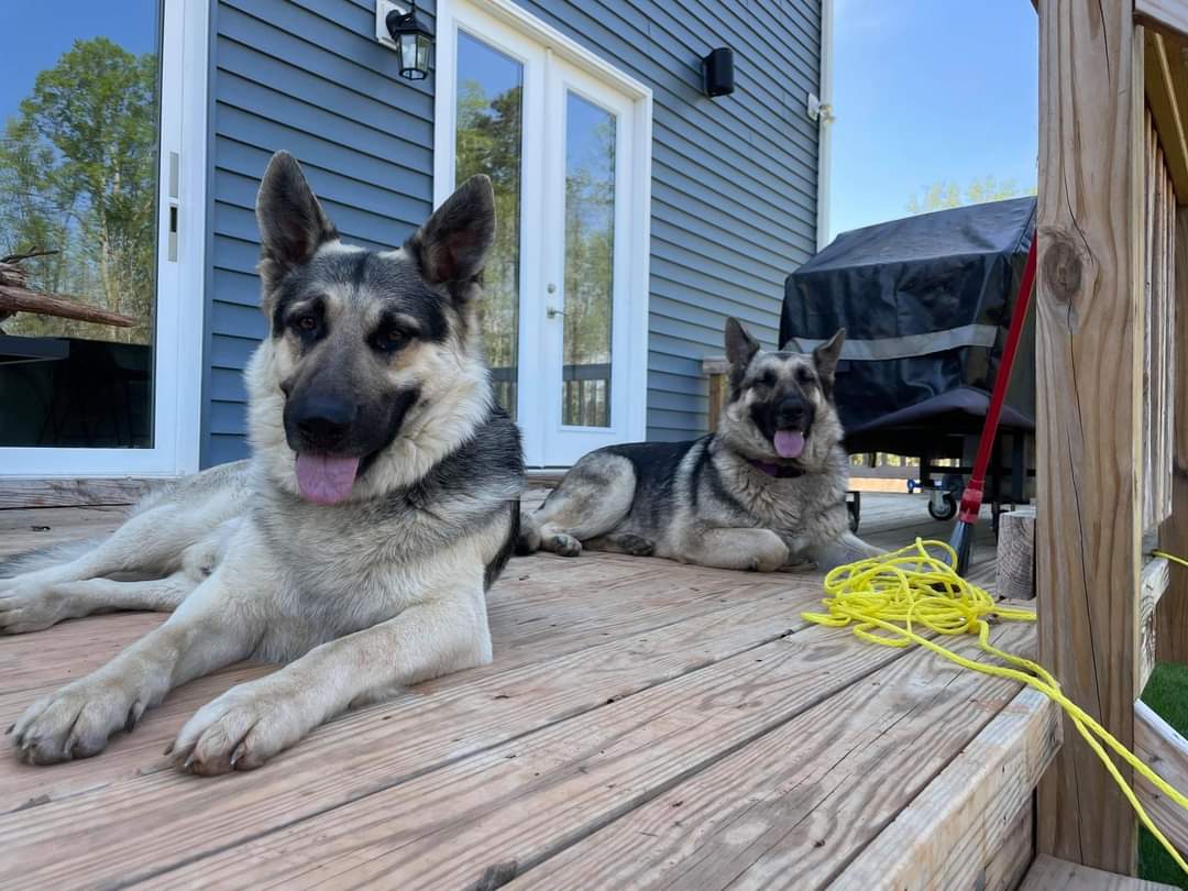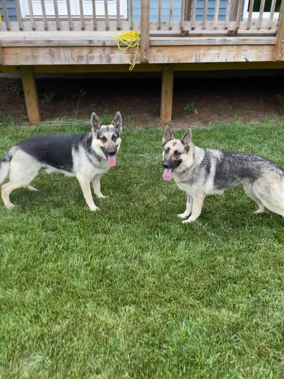 Hi! We’re Ice and Rain (two and a half year old female)! We are an absolutely adorable bonded pair, which means that we are a package deal and will need to be adopted together. We spent much of the first part of our life living in a crawl space underneath a house. We’ve quickly adapted to our new lives incredibly well, though! We love squeaker toys, running around the back yard and playing together. We love long walks almost as much as we love swimming! We’re very food motived, so it makes training us a breeze. We are crate and house trained, whistle-recall trained and working on our sit/stay/lay down commands. In our previous home we were around a child and we did well. We haven’t been around any other children since coming into the rescue, but we love people, so a home with children should be okay. We haven’t been around cats, so we probably shouldn’t go to a home with them. Other dogs are okay, but we need proper/slow introductions and continued socialization. It’s only been the two of us for as long as we can remember and we simply haven’t been around other dogs very much. If you think you can offer us our furever home, please reach out to your adoption coordinator. If you do not yet have an adoption coordinator, please complete an adoption application at www.freedomgermanshepherdrescue.org We are being fostered in Durham, NC. *Our volunteers process applications as quickly as they can, however it can take a little time. For this reason, the specific dog you apply for may not be available by the time your application is processed. If that happens we will do our best to find another perfect match for your family.*