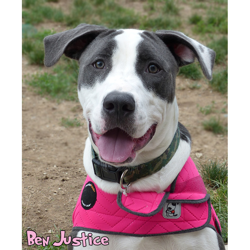 Ben is a bouncy older dane mix puppy. He had a rough time before he came to us and was a little worried about things at first. He has settled in and become a big bouncy goofball. He will need a home where he can get a lot of positive training (he's quick to cower if he thinks you might be upset). He loves other dogs and has lived with kids (has never been around cats but seemed scared of the one he met here) so he should do well in any big dog loving home!