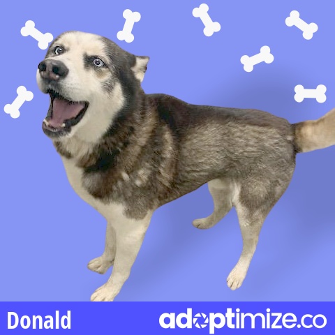 Donald is a friendly boy who walks well on a leash. Like most Huskies, he's very intelligent and thrives on new challenges. He likes to play and also likes to be pet. He's done well in playgroups with other dogs and seems to be a very chill playmate.