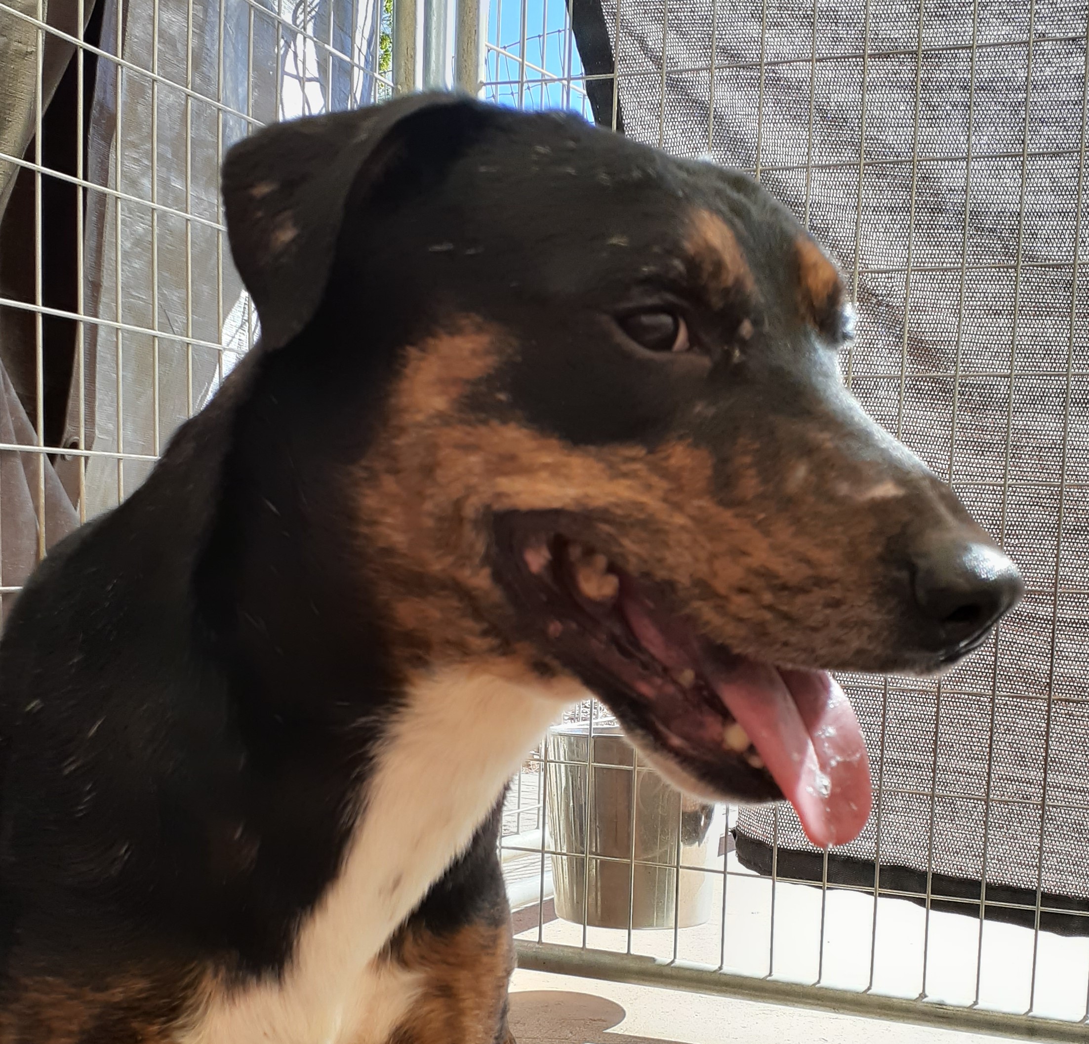 Bolt is rescued from a hoarding situation. He and his sister Star are playful but still a bit cautious of humans. But they allow us to touch both of them. Bolt is a fast boy and likes to sneak out behind you when opening and closing doors and gates. We think it is a game for him because he does not go anywhere. With training, Bolt will be an excellent companion for outdoor activities and snuggling on the couch. He likes to sleep in his crate. He gets along with all dogs and people. He is a unique blend of 25% American Staffordshire Terrier, 12.5% Chow Chow, 12.5% Labrador Retriever, 12.5% Border Collie 12.5% Belgian Malinois, & 25% Breed Group(s). He is very smart and active. All dogs and puppies are fully wormed, receive rabies and core vaccinations, microchipped, behavior assessed with other dogs and humans (sorry, no cat testing is done here), spend a minimum of 3 weeks free-ranging within a pack of 30 dogs to grow confidence and trust and may have DNA results. All dogs receive lifetime behavior support and can be returned anytime without a fee. PLEASE NOTE: You MUST complete an adoption application in order to see or adopt a dog from us. The completed adoption application ensures your 'spot' in order of adoption. Emailing/calling with questions will delay your adoption process. ADOPTION APPLICATION --> www.petsreturnhome.org/adoption-application