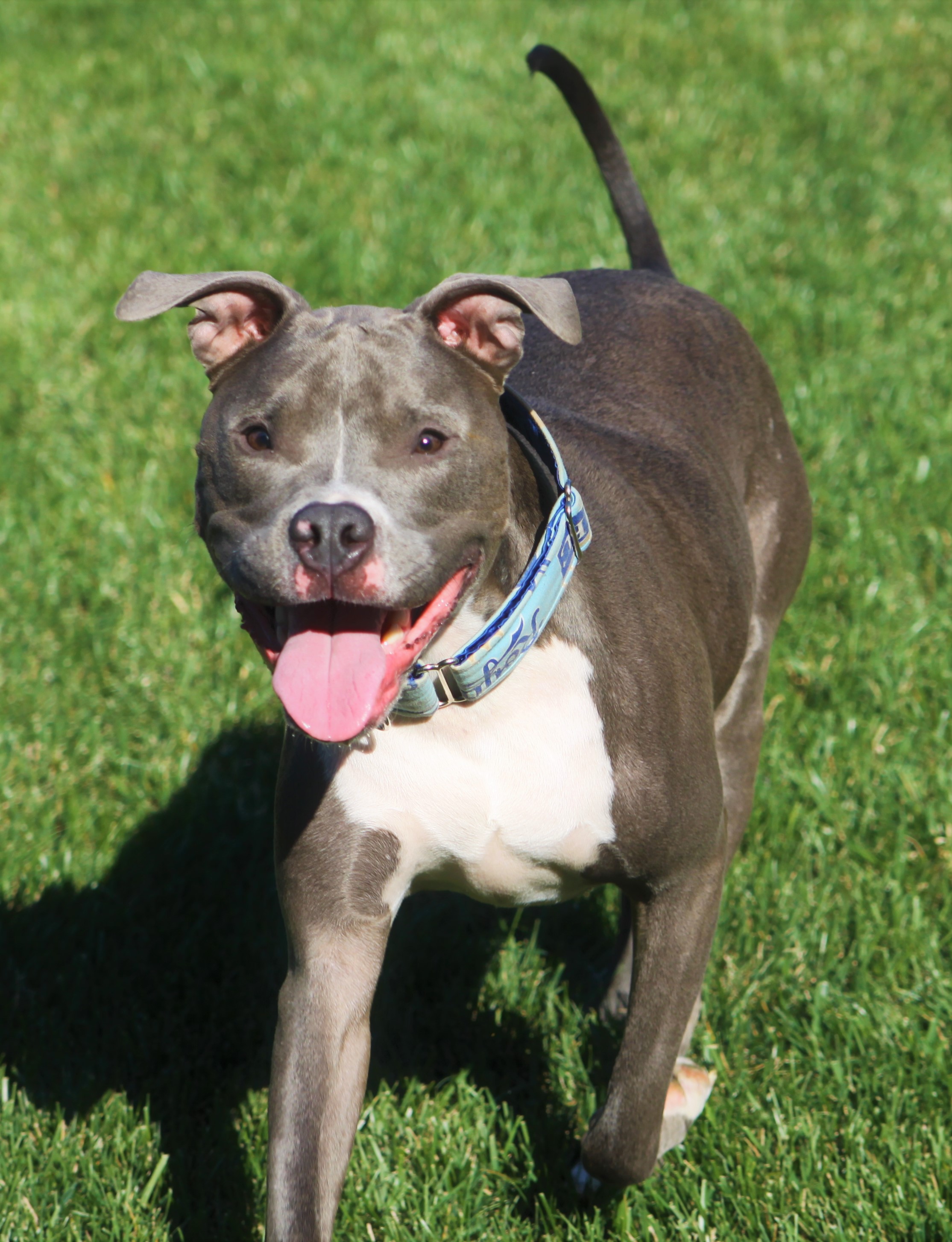 Alright baseball fans, we know everyone is upset about Eric Hosmer leaving the Royals but we promise that his handsome furry namesake is the best sports fan you could ask for! Hosmer is a 3 year old pit bull mix that was left behind when his owners were evicted. He had a very serious skin infection that has now healed but he does have some allergies that are being managed with the right food and medications. Hosmer is still learning manners but he is working really hard and will do anything for a treat. He is fostered with others dogs and does well, especially with small dogs but he is still learning how to play nice and share. Hosmer will need a home that understands his breed and will be firm but understanding and patient. He is very energetic and is learning how to walk better on a leash but he loves car rides and is a fantastic co-pilot. Hosmer is also very vocal when he plays and when he is expressing his feelings and his foster mom says he is the best cuddle bug when he is tired. He does well with kids but he is still learning how big he is and he is unfortunately allergic to cats! If you are looking for a quirky, energetic furry family member than Hosmer is your guy!