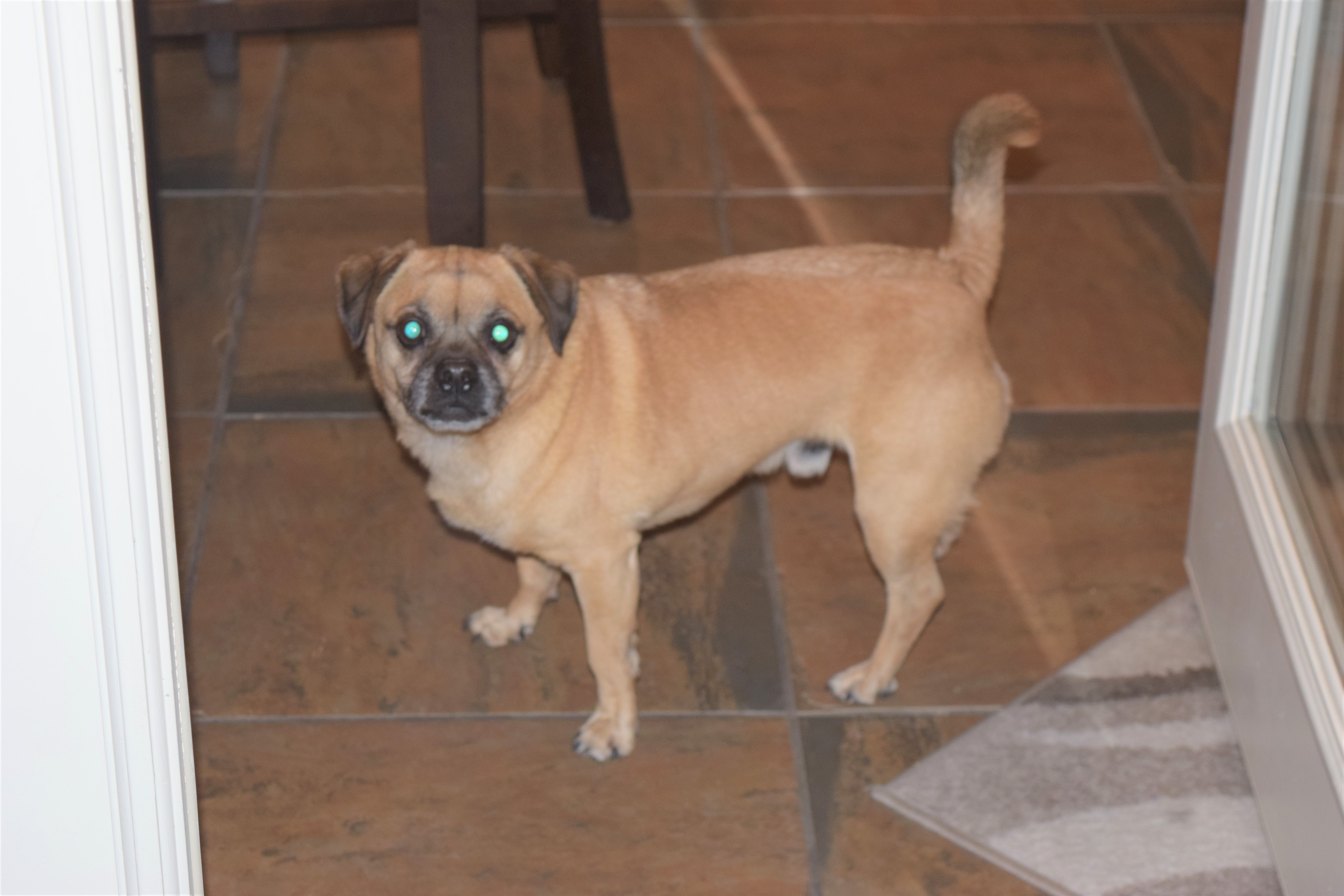 MEET MR. MAGOO !!! NOTE: This wonderful boy needs to be adopted into a home with younger kid(s) and/or other playful dogs!! In addition, this pup cannot be in an apartment or a Townhome/condo-- he barks and is too high energy. This amazing Puggle boy is good with dogs, cats, and kids! He's fun loving, happy-go-lucky and has a wonderful disposition. He is already housebroken, kennel trained, and knows how to use the doggy door. He walks great on a leash, knows basic commands, and can catch treats in mid-air! He loves to snuggle next to you, but is happy to plop down anywhere to take a snooze on his own. He's gentle and sweet, and loves to give kisses. He likes toys, especially smaller balls to play by himself. He will bow-play with other dogs very well, especially smaller dogs. He enjoys doing zoomies around the yard, so it'd be wonderful if he had a larger yard to zip around in. At night he sleeps in his kennel (in his foster mom's bedroom) without issue. If you are interested in meeting this dog, please visit our website for our online application www.underdogaz.com