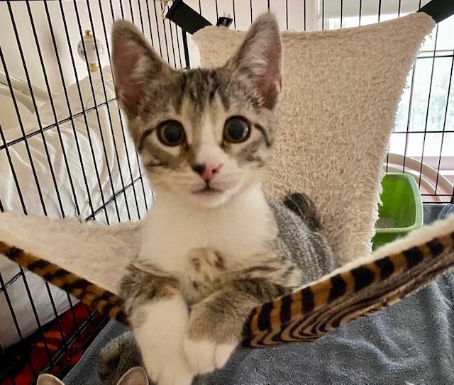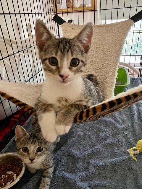 br tabby w/white male kittenRogue was born in April. He will be shy at first. A calm household would be best. If looking for 2, Rebel is his brother. He has not been around children or dogs but with the right temperament and age, with the right transition, he could possibly adapt. available for meet/greet/adopt starting 7/9. adoptions base on best fit.