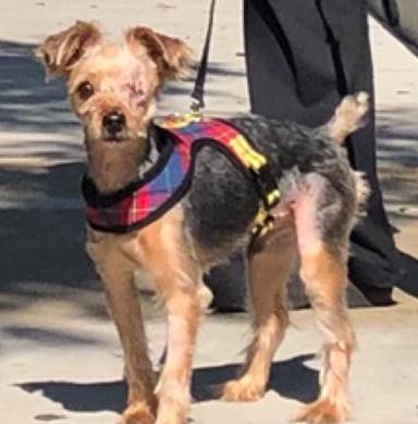 Mr. Peabody is a darling Yorkie weighing 7 pounds, and approx. 8 years old. He was a stray that the shelter picked up after being attacked by a dog(s). It's a miracle he survived at his size. Sadly, he did lose one eye. All his bite wounds were treated, and he's now looking for his loving, forever home. He definitely needs a home with a yard. No apartments or condos. The foster lives in a condo, and he is only truly happy when he can run free at the dog park, so they only want him to have a yard to explore for hours on end whenever he wants. He is a very hyper boy. Never stops for a minute. He is very active. Gets excited to go for a walk, and barks at big dogs. He is not afraid of anyone! He barks constantly when on a walk. He is NOT a calm little dog. He gets along with his smaller foster fur siblings though he does try to dominate them. Mr. Peabody is a great eater. Also craves attention. He can't get enough! Please fill out an adoption application at: www.dachshundrescueoflosangeles.com/adoption-application to be pre-approved to adopt