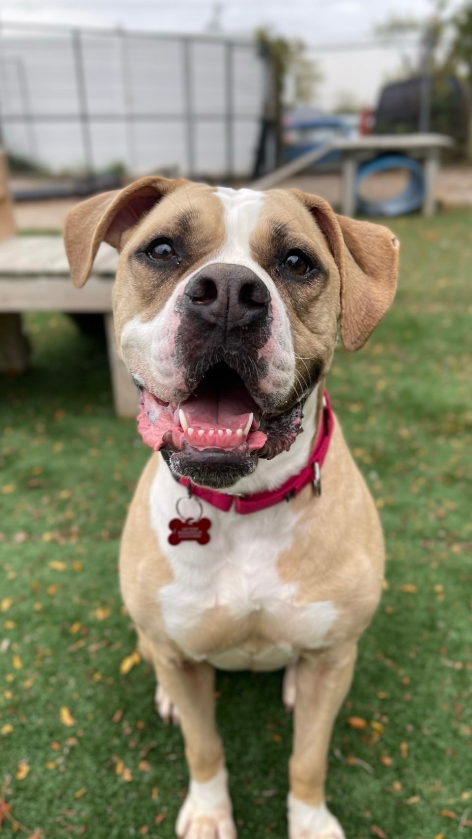 You can fill out an adoption application online on our official website.Sweet and goofy Nala is sure to steal your heart, and then steal your spot on the couch! This XL girl has lots of love to give an owner who will appreciate her exuberant personality. Although she may be all wiggles and come on strong when she meets you, Nala settles in quickly and has a low to medium energy level that is very enjoyable. Nala is dog friendly (we are going to recommend medium to large sized, easy-going dogs for her at this time). We are also told that she can scale a fence, but we have not given her the opportunity to show off this skill, so a 6 foot fence is needed for her. She is curious with cats but respectful, she could be paired with a cat that has their own dedicated safe space in the home to escape when wanted. Nala is seeking a homeowner with a good sized yard and someone that loves playing fetch! She needs an experienced dog owner who enjoys walking a strong dog on a leash (she doesnt pull, but she is large and can direct you to where she wants to go if given the chance), and someone who will help keep her allergy free (allergy shots have been given seasonally to help with flare ups and a high quality limited ingredient diet). Elementary aged kids or older please, just given her size and loving nature. Nalas adoption fee is $250 and includes her spay, microchip, current vaccinations and preventatives PLUS a basic obedience course at Cedar Run Company in Hiawatha. Last Hope requires that all applicants who have had pets have a demonstrated history of having kept them altered, current on vaccinations/preventatives and kept as indoor pets only. Please submit an adoption application for consideration if you would like to meet Nala!