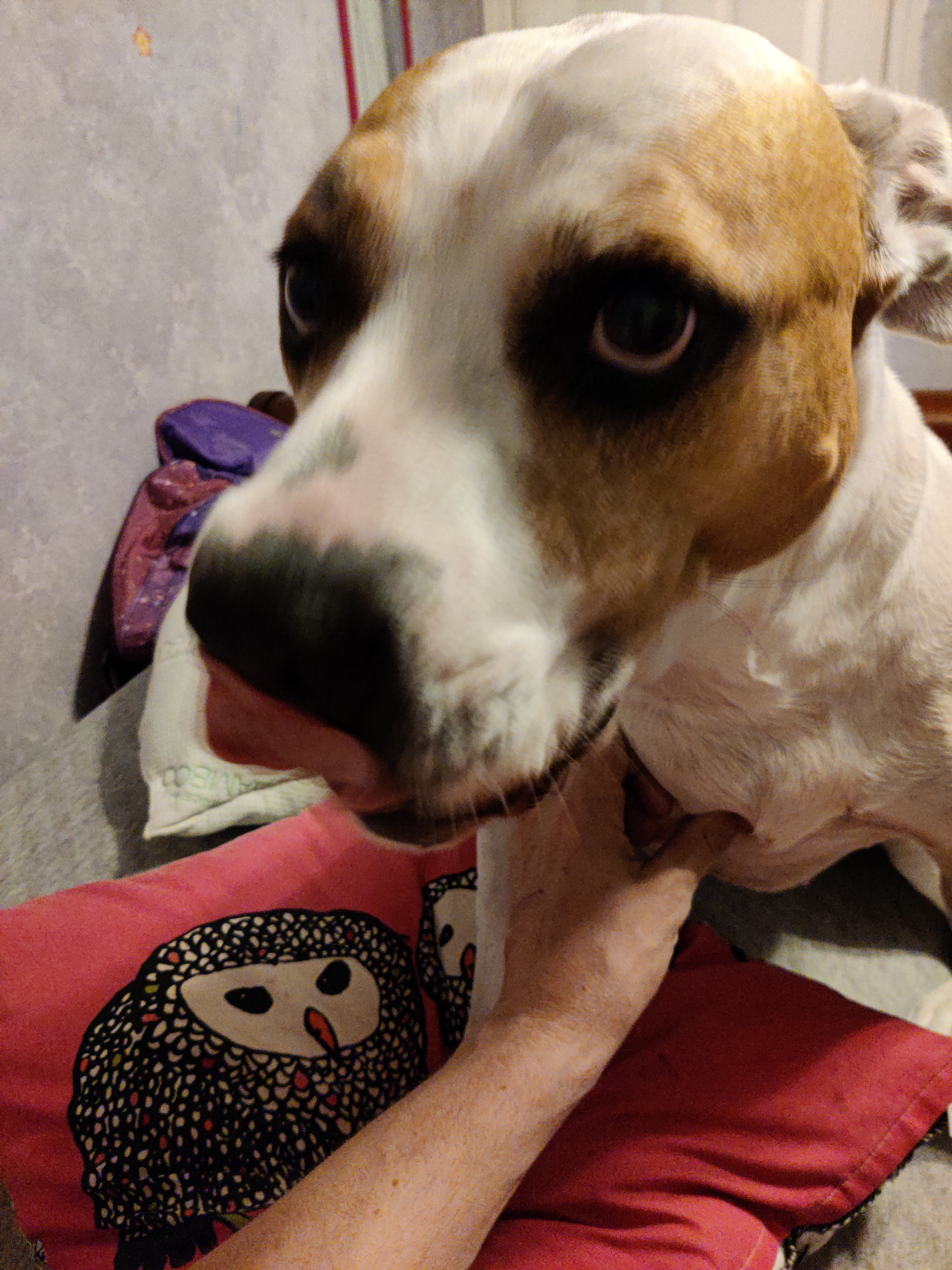 This lovely girl is Ladybug. The most important thing to know about Ladybug is that she adores kids, including the little ones. She lived with three kids (4, 6, and 12 years old) and they all grew up with Ladybug. Ladybug slept in their rooms at night, she played with them, she cuddled with them. Those kids were Ladybugs very best friends. Unfortunately, Ladybugs owners girlfriend moved in and brought her four dogs and some kittens, and that meant there were just too many animals in the house. So, Ladybug had to go. We think youll agree that Ladybug deserves so much better. Her life hasnt always been easy--she was dumped in the country when she was about three years old. Being saved from that situation was her first lucky break. Now she needs another. Ladybug has so many great attributes and were just positive that the right home is out there, waiting to make Ladybug their own. She is a very chill, laid back girl, once she gets over the sheer joy of meeting new people. Some of her favorite activities are lounging on the couch, performing the most excellent zoomies on occasion, and chewing on her toys (but never on things she shouldnt). Ladybug also loves riding in the car and thinks it is great fun to stick her head out the window and bark in the wind as she glides along. Ladybug gets along with other dogs and was especially fond of playing with a pug who used to live with her. We dont know how she would be with cats, but shes gotten along fine with kittens. If you can give Ladybug her real forever home, and promise to love her and make her part of your family, please call or text The Pet Connection at 913-671-7387. Shes in the KC metro, but we will happily hop in the car with Ladybug to bring her to the perfect home.