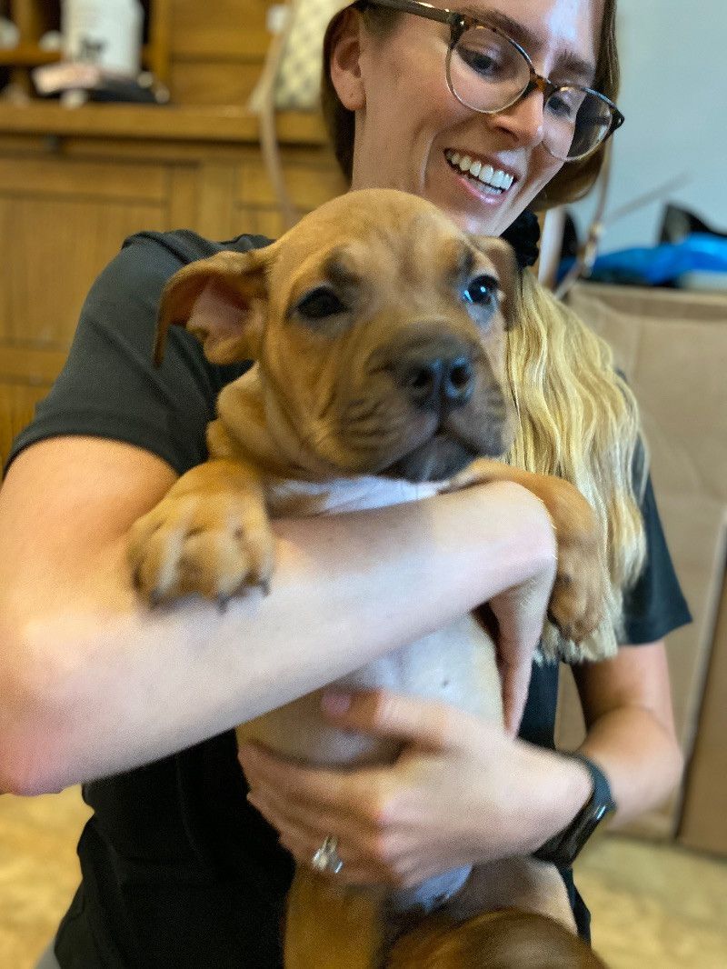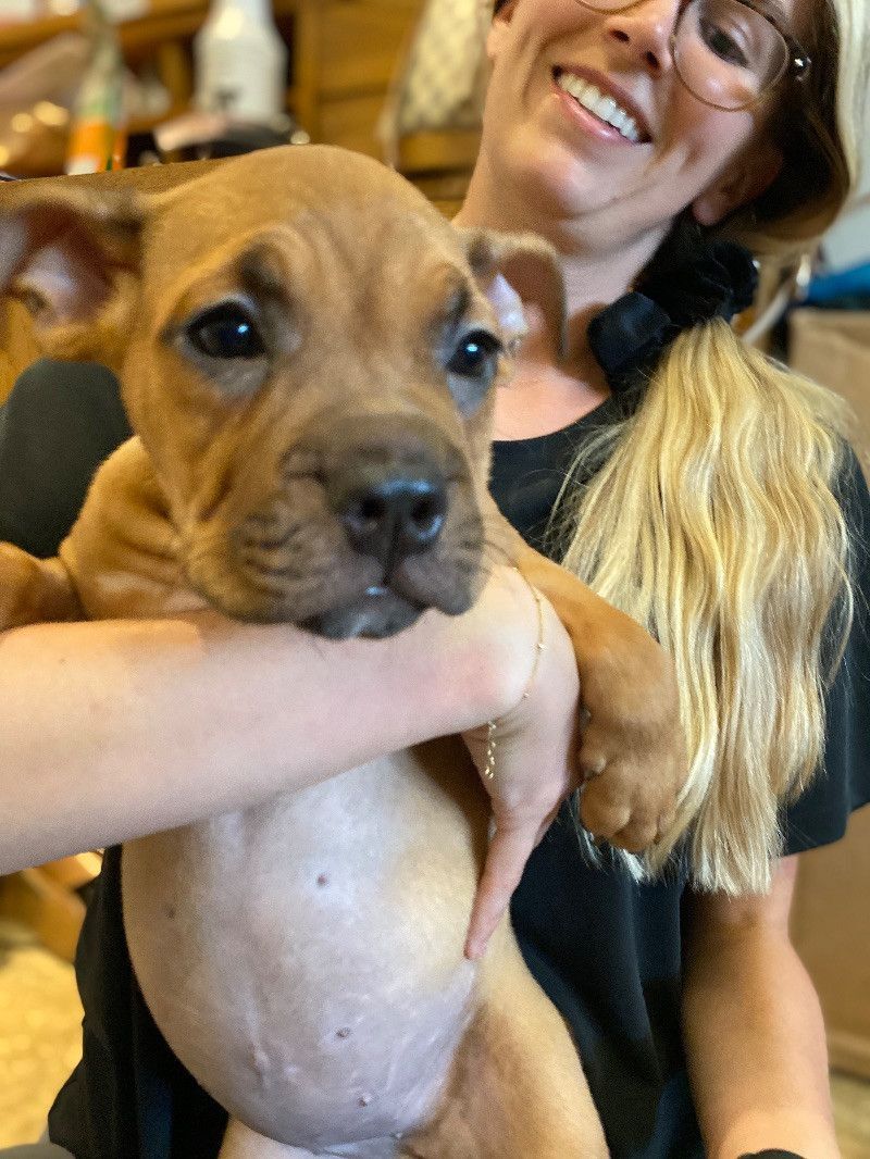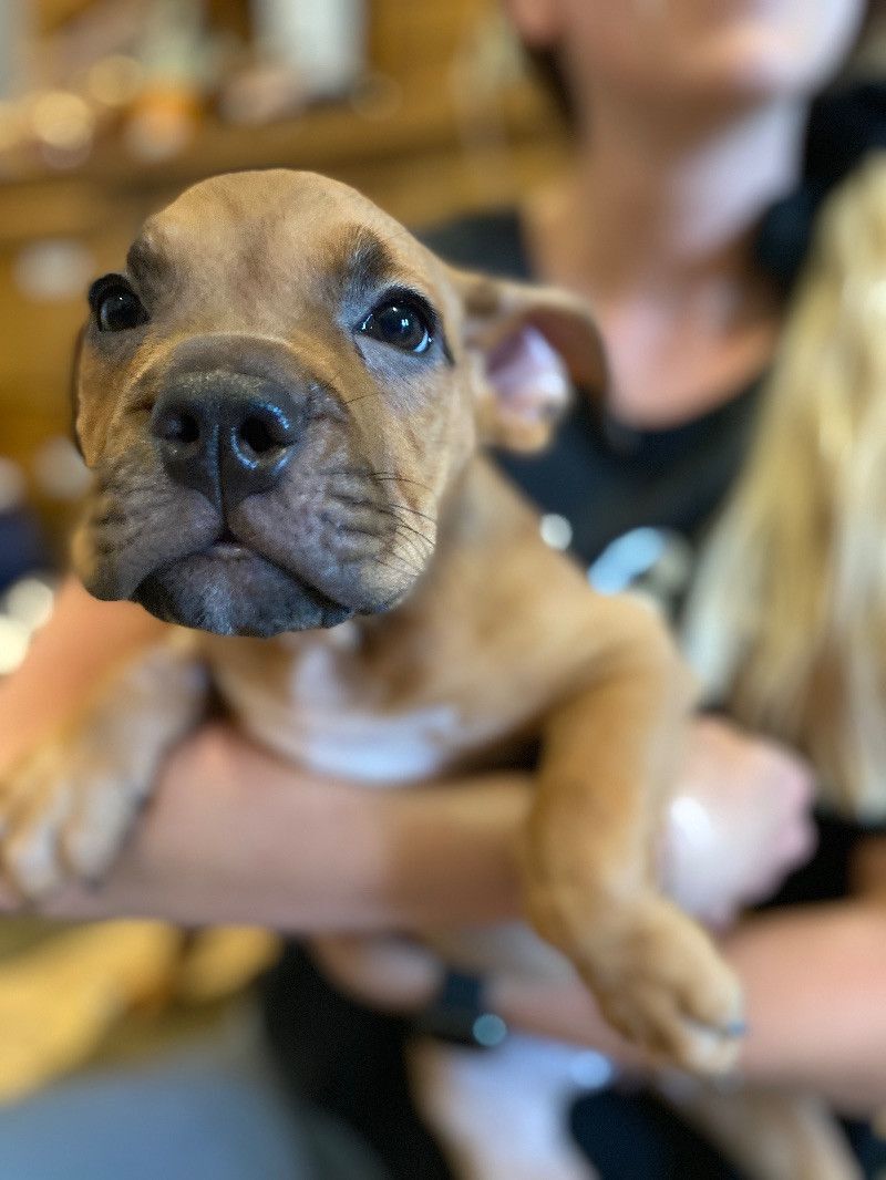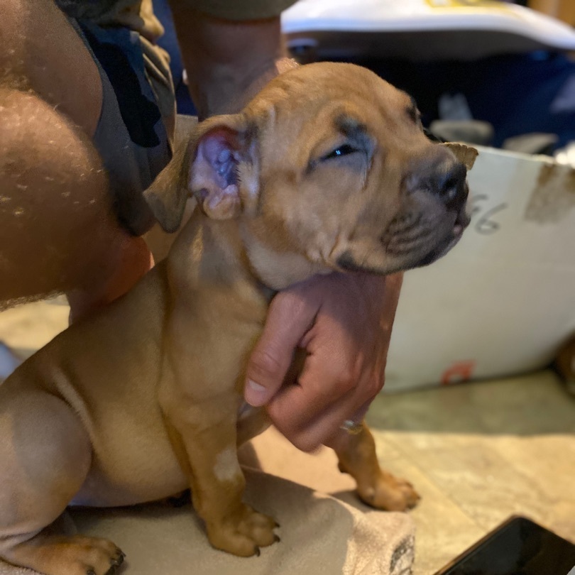 Say hello to Becky! Becky is a 6 week old, Bully mix puppy we rescued with her siblings and mama from the La Jolla reservation. A very nice family fed them when they realized mama Bunny gave birth but werent able to take care of them all and asked for our help. Becky is the star of this litter. Shes funny and flirtatious. Shes also the sweetest and calmest pup in this litter. Shes super sweet and gentle and even though shes a chonk she looooves to cuddle with her siblings. Please apply for Becky on our website: Pupswithoutborders.org