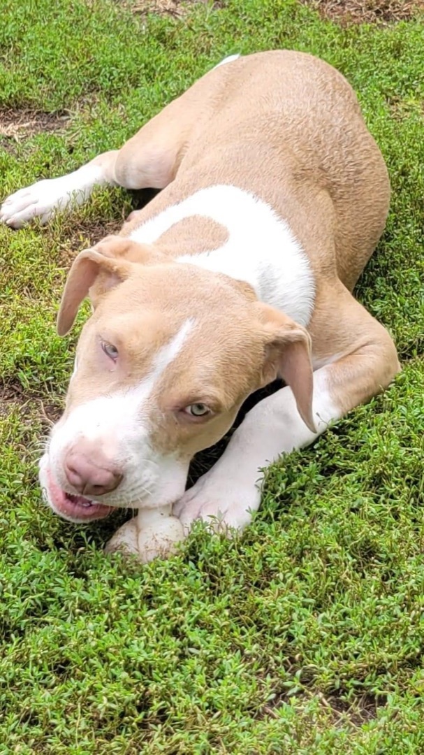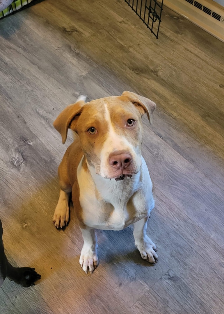 Meet Nora! Nora oh sweet Nora...she is very loving, sweet, spunky 5.5 month old Bulldog mix. This beautiful girl is working hard on her potty training. She is kennel trained and does great with other dogs and cats. She loves to be outside and exploring. She loves to chase the tennis balls when you throw them but she hasnt mastered bringing them back but shell come running back like ok throw another one haha. She needs work on walking on a harness and leash. She probably never had to do it before here so she is a little scared which Im surprised at because she doesnt mind the vacuum or the lawn mower. She will climb right up by you and cuddle and let me tell you shes a great cuddler. She is well behaved with a great demeanor. Shes still a puppy so she may chew on things but she corrects very well when you tell her no. Did you see her eyes?? She has the most beautiful eyes Ive ever seen. She is spayed microchiped and up to date on age appropriate vaccinations. She is being fostered in Janesville through mapawsmepetrescue.com. Her adoption fee is 400. If she sounds like the perfect fit for you please submit an application!! Interested in meeting Nora? All Ma, Paws & Me Pet Rescue dogs are in homes with foster families; we do not have a shelter where dogs are available for daily viewing. Our process is as follows: 1. Review our policies and adoption radius on our website: http://mapawsmepetrescue.com/adopt/ 2. Submit an application for review and approval; 3. MPM Rescue reviews application and checks vet records and references; 4. MPM foster contacts approved applicant(s) to arrange a home check and meeting with available dog(s); 5. If there is a good fit, adoption is completed with a contract and fees (payable via check or cash). The adoption fee is listed here: http://mapawsmepetrescue.com/adopt/ Dogs from Ma, Paws & Me Pet Rescue come with the following medical care already provided: - Spay/Neuter surgery - Age appropriate vaccinations - Heartworm test (for dogs over 6mo) and treatment if positive - Microchip - Deworming - Heartworm and Flea/Tick Preventative - Any other necessary medical treatment as recommended by veterinarian *Please note that the identified breed(s) are best guesses. We very rarely have information on our dogs actual breeds since they often come to the shelters we work with as strays.*