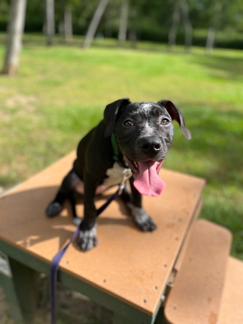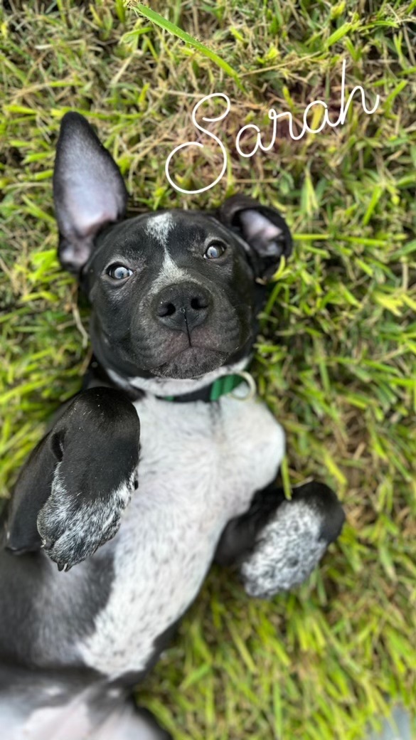 Sarah. (Hebrew: Princess ?) FINALLY this ? was able to get out and socialize - safely (vaccines, monthly prevention). She loved everything that the world threw at her: pups, cars, bikes, lots and lots of people, water, taco stands, car riding, bandana wearing, leash walking. She handled it just like a princess would, with dignity and grace. We continue to work on our crate conditioning (which is improving at great speeds). Potty training is going very well. She is so eager to learn, and has even picked up “sit” on command. The name Sarah was chosen because it really spoke to her foster mama, and she is quickly learning to recognize the sound of it. She would make a great addition to a home that is ready for a small pup, who will be a larger dog. A family that would love to take this eager girl on adventures, or just lounge around at home. She is a superb snuggler. She has been around, primarily, two other dogs (one 62#, one 35#). No cats. Children, adults (male/female).