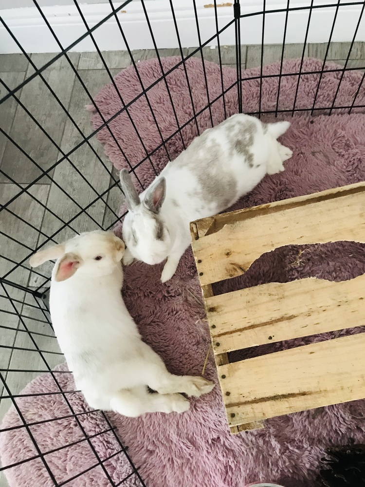 Gigi the bunny came into our care from an unfortunate situation, where she was running loose in a neighborhood with two other bunnies. Shortly thereafter she gave birth to a beautiful white baby bunny whom we named Cotton, her son. Sometimes moms and their sons have a special bond and these two are no different. As Cotton is an only bunny he is very spoiled by his mama! The two are a bonded pair and love to spend their time together. Cotton is very sweet and affectionate, as is Gigi. Cotton enjoys exploring and binkying in the morning, and both bunnies enjoy Romaine lettuce, basil, dill, parsley and cilantro. These two quiet and easygoing bunnies would love to find a forever home where they can enjoy each others company, and that of their devoted humans! We adopt to indoor homes only! If you are interested in adopting a bunny from Orlando Rabbit Care and Adoptions or would like more information on rabbit care, please visit our website at: http://www.orlandorabbit.org. The first step to our adoption process is to complete an adoption application, which can be found here: https://petstablished.com/adoption_form/30180/generic . Then one of our volunteers will reach out to you via email to schedule a time to speak with you. If you dont see the email in a day or two, please check your spam folder! Our Adoption Fee/Donation for a single rabbit is $90, while a pair is $150. This helps to offset the cost of having the rabbits altered, microchipped and vaccinated, as well as any medical care that may have been required.