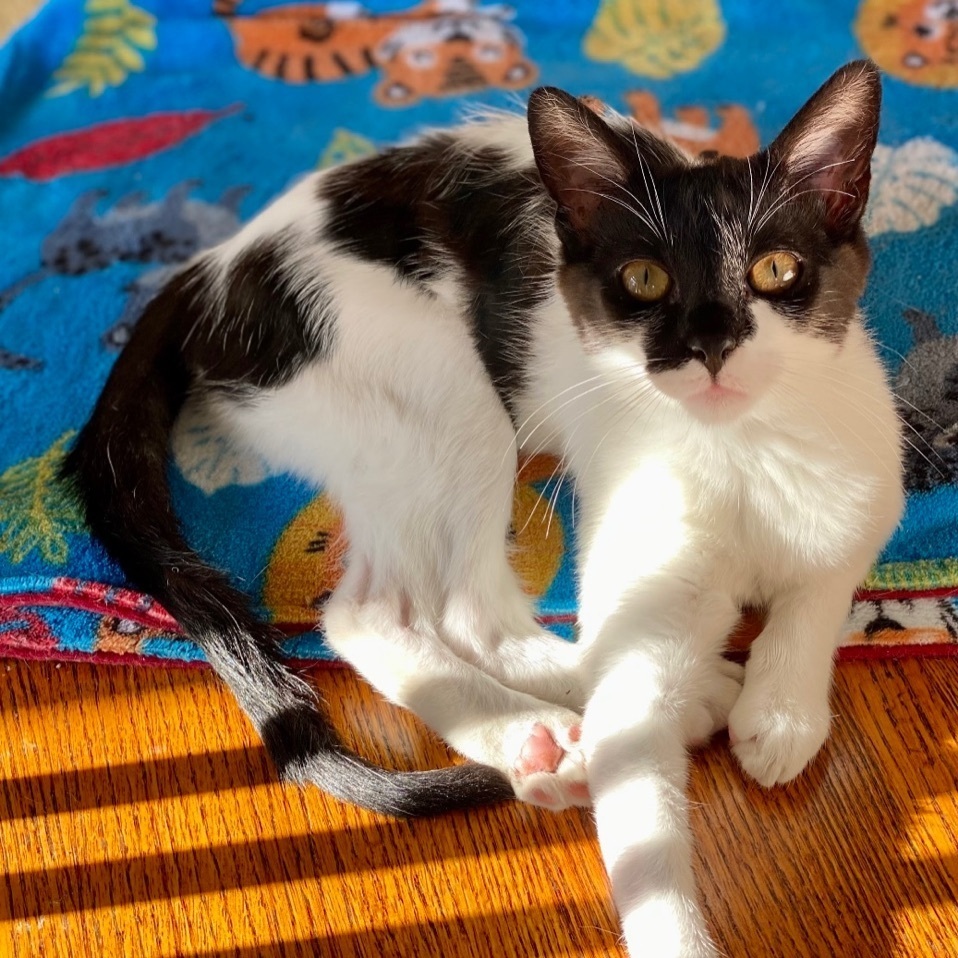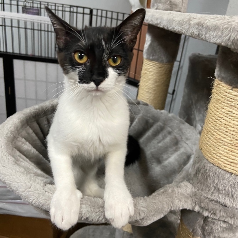 Betty came into our rescue as just a tiny kitten with both of her back legs broken. She was too young for orthopedic surgery and we did not want her to have a life of no back legs by amputating them. Instead, she endured months of splints and xrays and doctors visits but it saved BOTH of her back legs! She is now able to walk and jump and run just like any other cat! Betty lives in a foster home with dogs, cats, kittens and older children and does well with all. She is a bit insecure when at our adoption center so she acts sassy and gets overlooked for adoption but we assure you, she is the sweetest and social girl and when shes comfortable with her humans and her furry friends, shes an absolute lovebug. She also has a young kitten "mini-me" named Monte who looks very similar to her and must think shes his long lost mom because hes obsessed with her and shes very motherly and treats him like her son (hes not) and its absolutely darling and so sweet because they are always cuddling and grooming each other. So if anyone is looking for an older kitten and a younger kitten that would do instantly well together in a forever home, this is the pair for you! To start the adoption process, an application must be completed and approved. You will find our full adoption process and the application at www.aarflove.org. If you are interested in meeting some of our adoptable kitties please come to our adoption playroom at 307 Vineyard Town Center, Morgan Hill, CA. Open every Saturday & Sunday 11AM-4PM.