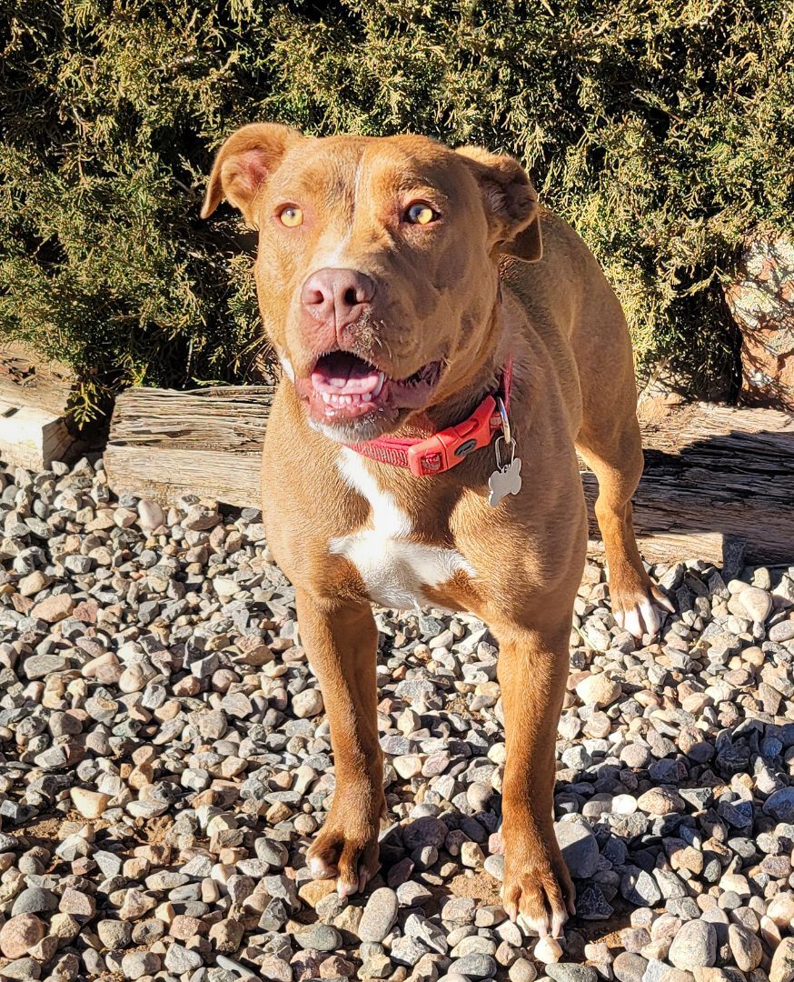Lil Lady Di ~ Sweet, Smart lil Lap Girl, 1yo 45 lb Pup Sooooo Willing to Please ! Loving, quiet, basic manners, intelligent, cuddly, house trained, good with children, laid back, fun, SUPER smart, great with other dogs, affectionate, good on leash, athletic, loads of character, loves to snuggle, friendly, playful, Would you PLEASE sponsor me and support the Rescue who saved me: http://www.petabulls.com/donate.html Why wait??? Simply call Mare on cell at (505)316-2089 for a private By Appointment Only showing !!! Were open 10 am to 6 pm for your calls. Closed Tuesdays. Or contact us via our petabulls.com/adopt website. PLEASE include YOUR phone number on all inquiries as we are RARELY around the computer these days. Come meet the PaB PACK at our Woof Gang Bakery Adoption Event Saturday Oct. 22nd - 12 noon to 4 pm - 9780 Coors NW Suite F, Alb, NM 87114 We hope to see YOU there !!! BE SURE TO EMAIL YOUR APPLICATIONS FOR OUR PRE APPROVED EARLY BIRD EVENT ADOPTIONS VIA OUR petabulls.com/adopt WEBSITE !!! Please note that pre approval requires speaking with Mare (cell #505.316.2089) in person BEFORE the event, thus those who call have a MUCH greater chance of adopting the dog... Were open 10 am to 6 pm for your calls. Closed Tuesdays. We focus on "PERFECT Match" rather than first come first serve for the sake of all involved. SPECIAL NOTE: As most are surely aware, there is currently much debate whether "to mask or not to mask." With a multitude of considerations for either choice, over 22 years of encouraging prevention vs cure with "the dogs" prompts the same decision for this present dilemma. This was a difficult decision to make but we feel its the most responsible one for all so PLEASE join us in our endeavors to keep everyone safe and MASK UP! We greatly appreciate your consideration, understanding and support.
