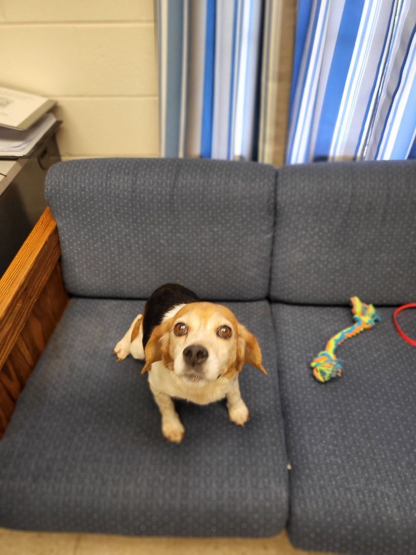 Meet Eleanor! This sweet older lady is estimated to be about 11 years old and weighs just about 20lbs! Dont let her age fool you though; she is still full of life and spunk! She is the best snuggle buddy! She will rub all over you for pets and hugs! Be careful though, if you stop petting her, she will yell at you for more love! Like most beagles, Eleanor can be a little vocal when she gets excited! Eleanor is ready for retirement so she doesnt have the patience for other dogs. She needs all of her owners attention so she will need to be the only dog in the home. She also has some separation anxiety so she will need someone who can be home most of the day. She didnt really have any reaction to cats, but we would suggest a slow cautious introduction if you have cats at home. Eleanor did test positive for E. Canis (a tickborne disease) which she has been treated for and she does have a few mammary tumors. If you have room in your home for this retiree, please call us to meet her today! If you are interested in meeting this pet, please call us at (804) 748-1683, option "2", to schedule an appointment.