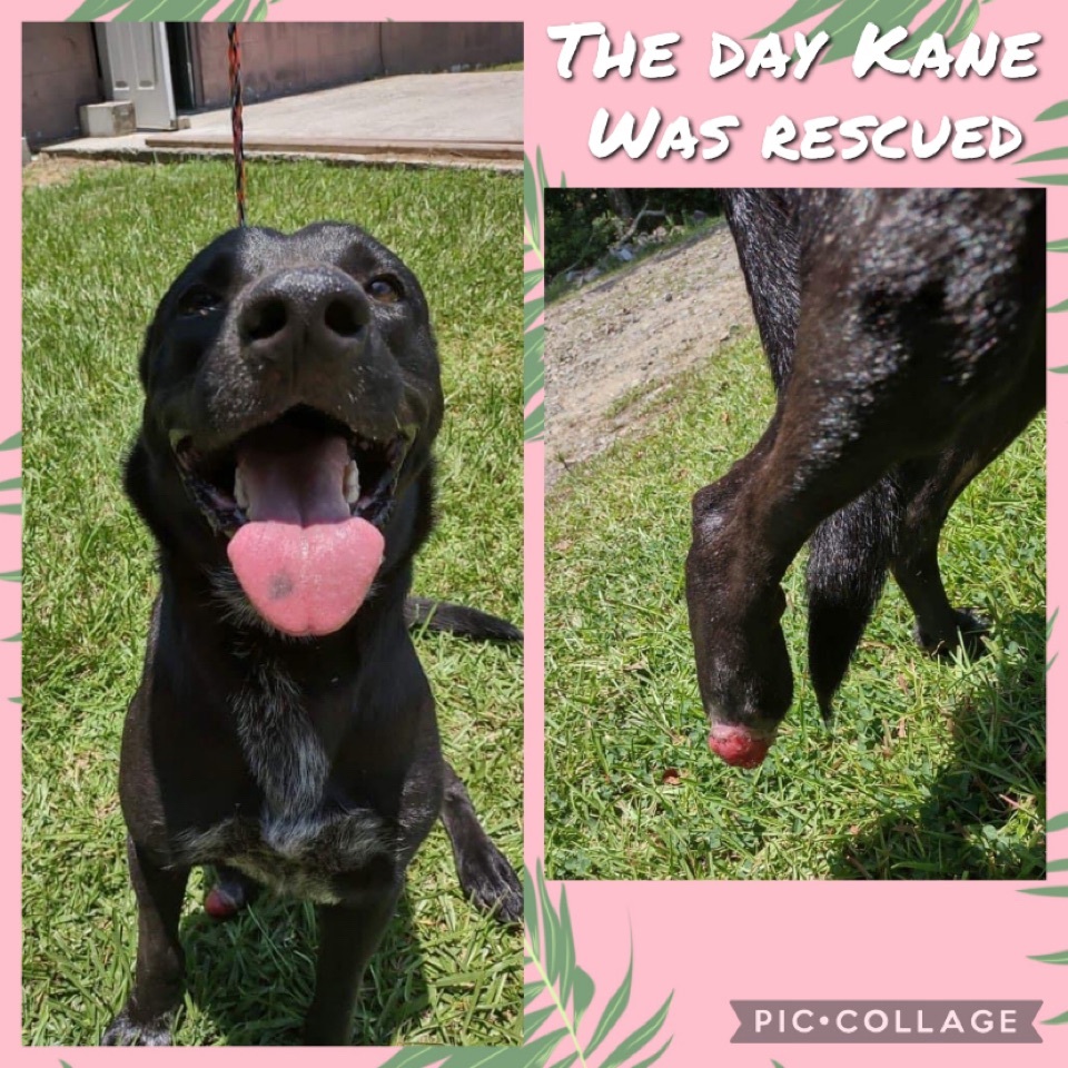 Kane was rescued from our local animal shelter. Although badly injured, this young pup stole our hearts with his big beautiful smile. He has pearly white teeth that shine as bright as his sweet disposition. Sadly, his injury was so severe that he needed to have his right hind leg amputated. He is a total champ and is thriving in his foster home. Kane is 1 yrs old, vetted, neutered, and microchipped. He is heartworm negative too!! Kane is adventurous and loves to be cuddled (big baby). He loves people and never meets a stranger. BUT....hes also a great guard dog. The lawn service people are happy when he is inside. Kane is weighing in at 60 pounds of pure handsomeness. *He gets along with his foster sister, Cleo *good with kids *independent *crate trained *house trained *leash trained *loves long walks *loves to swim in the pond (no problem with 3 legs) *obedient *hes such a good boy