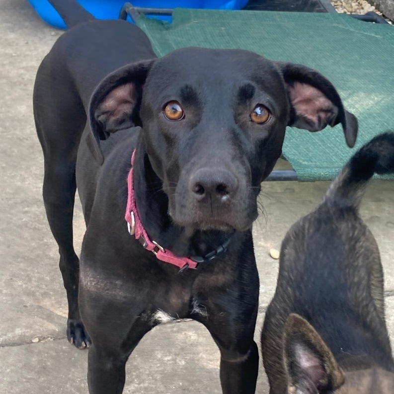 Please complete our required application that can be found on our website hwhanimalrescue.com Vivian Female 1-2 years old 43 pounds Lab mix Vivian is a young lab mix who came into the rescue after recently raising a litter of puppies. She gets along great with the other dogs in her foster home and loves to play with her foster siblings. She is house trained and also knows how to use a dog door. She loves to go on walks but is still working on her leash manners. She walks well until she sees a rabbit or squirrel when she can get too excited and will jump and pull. We are working on keeping her focused on her person instead of the distractions. It is a work in progress and she would greatly benefit from some additional training. She can get a little over stimulated when meeting new people and may jump on them, but we are working on redirecting that energy into a sit until she calms down. She had typical lab energy so walks and/or a fenced yard for playtime with another dog would make her happiest. Vivian is a sweet girl looking for her forever family.