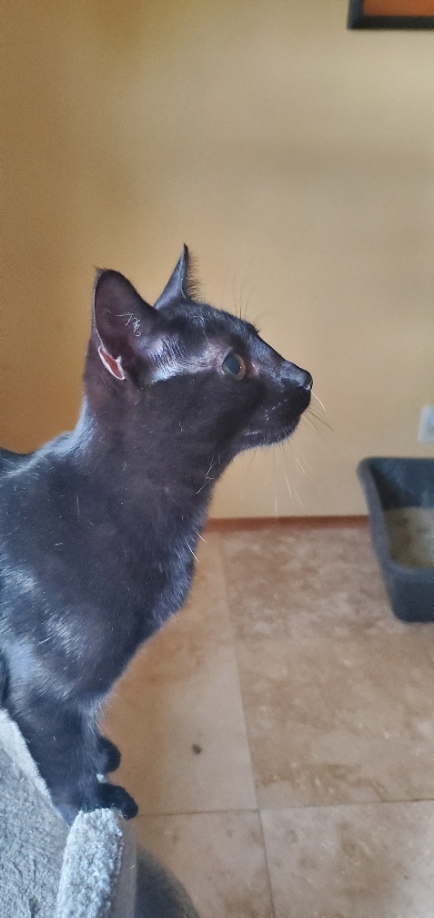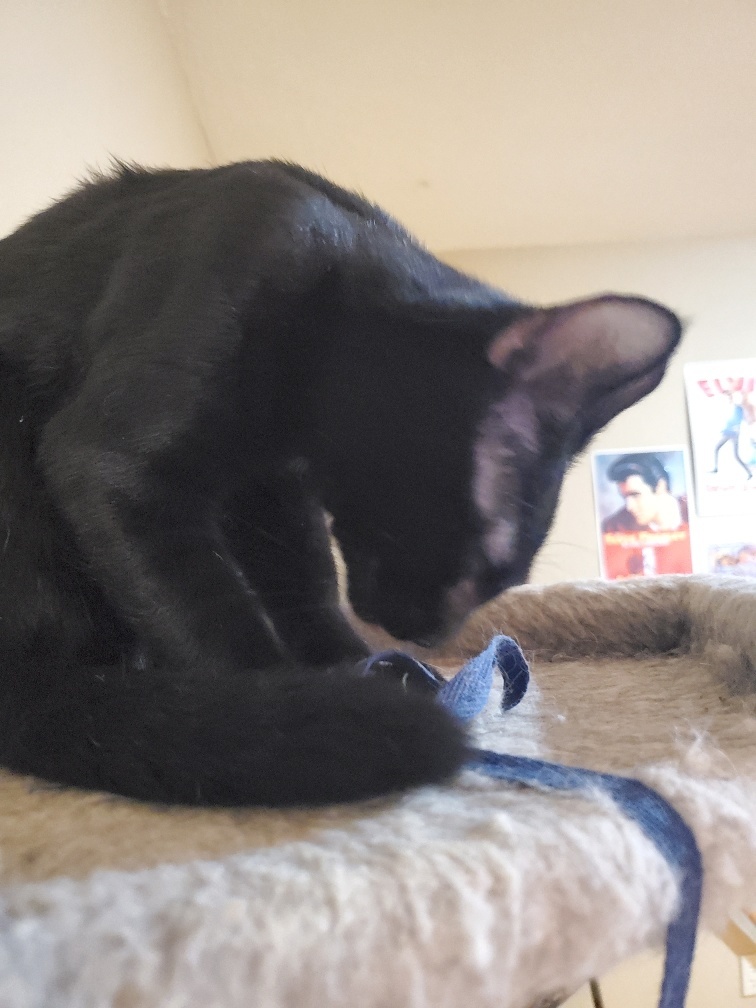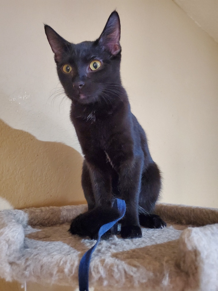 Junebug was rescued during a TNR job. She was just an itty bitty who wandered into the trap for some good vittles. Junebug is vet checked, spayed, FeLV/ FIV tested, microchipped, vaccinated, INDOOR ONLY cat. Her adoption fee is $125.00. Junebug is super cute, sassy, independent, but really curious, and likes people attention. She likes to explore the house and is quite confident around the big cats. June likes to play ping pong ball hockey, shoelaces, bottle caps, and feather sticks. She spends her downtime chillin on the cat towers napping in the sun. What a life! Junnie has perfect house manners, using litter boxes and scratching poles. If youre looking for a fun, spirited, cute, loving girl, come see Junebug.