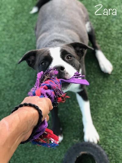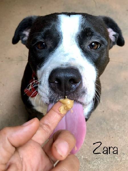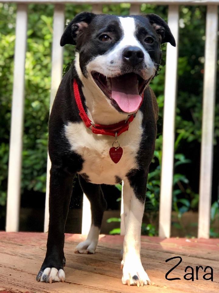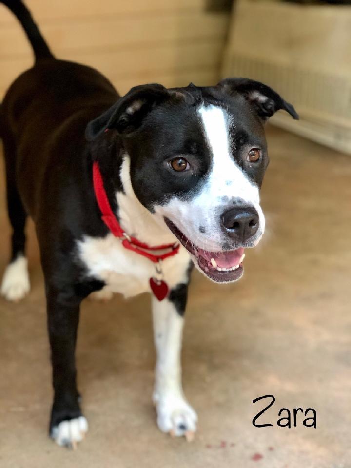Zara is pretty girl and a great dog who was picked up as a stray. Zara was very frightened at the shelter and didn’t want to be restrained, and was afraid of men. Zara has been in a foster/boarding home for two months now and the family has earned her trust, including the husband https://youtu.be/MtpwBkJD_tQ Zara is all smiles these days. Her only issue is she does not like to be restrained, but we think with time she will trust her new owner if they stay kind and patient with her. Earn her trust, like her foster did, and of course, peanut butter! Zara is super housetrained and she does not destroy anything. Zara is about 3 years old and weighs about 57 pounds. She tested well with other dogs HOWEVER we have discovered she is VERY protective of food and toys so would be best as an only dog ?. We do stress Zara needs a dog savvy family and most of all a requires a patient owner. She is looking for a family to love her unconditionally. If you are interested in Zara please email Virginia virginiaz3@gmail.com When you email please be sure to add your phone number so she can call you back. We highly suggest no small children because of Zaras restraining issue. She tested heartworm negative and is current on her vaccines. Zara has a buddy to play with, with her foster family https://youtu.be/US7NmYUj9D8 Zara is in the red collar but very protective of food and bones which caused an issue so best as an only dog. Loves to play with rope: https://youtu.be/eThUcmg56CY Loves to run around in a yard and chase a ball https://youtu.be/12Zt1vfAJko