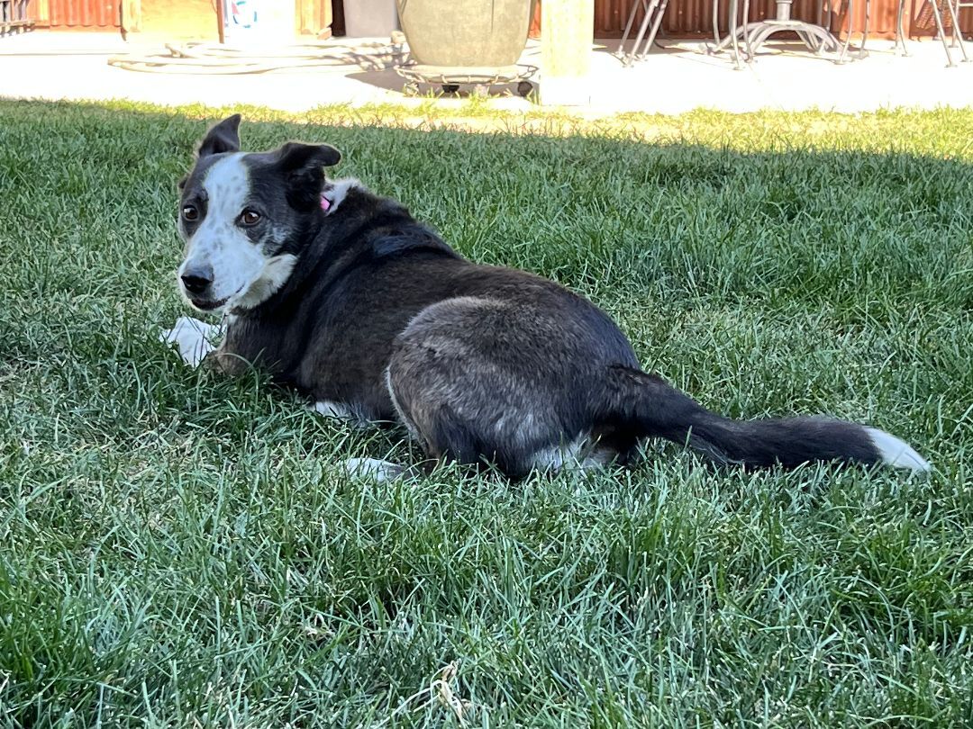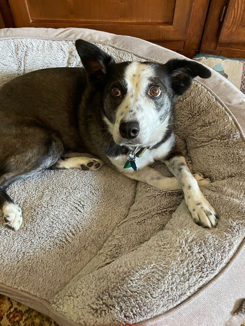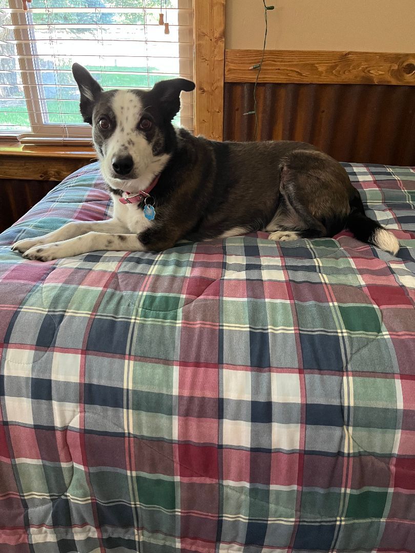 "Jasmine" is a very smart, loyal and loving 7 year old Border Collie/Australian mix who has been very loved and well taken care of. She is spayed, current on her vaccinations and needs to find a new home due to the health of her owner who can no longer fulfill her needs. As a result "Jasmine" has been in foster care for the past 4 months. She is one of the most well-mannered, eager to please, smartest, most sensitive little girl weve ever met! "Jasmine" is nicely house trained, walks great on a leash, loves to watch TV (especially if there are animals), loves to go for rides even though she gets nervous and excited and thinks playing frisbee is the most wonderful form of exercise ever! "Jasmine" wants to be the Queen of the household and she does OK with some dogs, but usually only larger males that she cannot intimidate. "Jasmine" is listed with "special needs" as she is deathly afraid of loud noises such as gun fire, firecrackers and thunderstorms. She has drugs that calm her if administered in time and we are going to try her with a Thundershirt. If you are interested in meeting "Jasmine" she is being fostered here in Cody. Email kathy@3dogrescue.com for an application to adopt that can be filled out online or in person. This little girl would be the perfect companion for a retired person who would enjoy having a full-time friend. Her adoption fee is $200 which includes her medical records, food, crate, beds and supplies if you so desire.