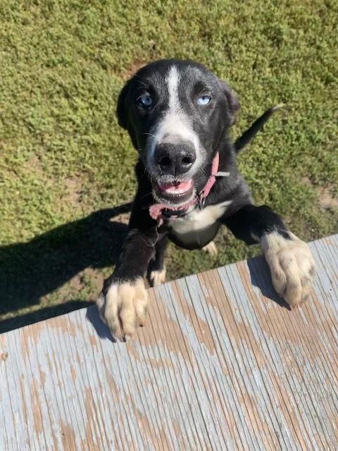 Hi there! My name is Onyx. I am a sweet girl here at KAAS looking for my forever home! I came in with my four brothers (I am the only girl!) after being saved off a busy highway in rural NE. I am a little shy but my personality is slowly starting to shine! I am very sweet and loving and love being close to people- Id make a great snuggle bug! Because I am a puppy, adapting to a new home will be fairly easy for me, but I will need lots of training because I am still young! If you are interested in me or any of my siblings, call or stop by the shelter today!