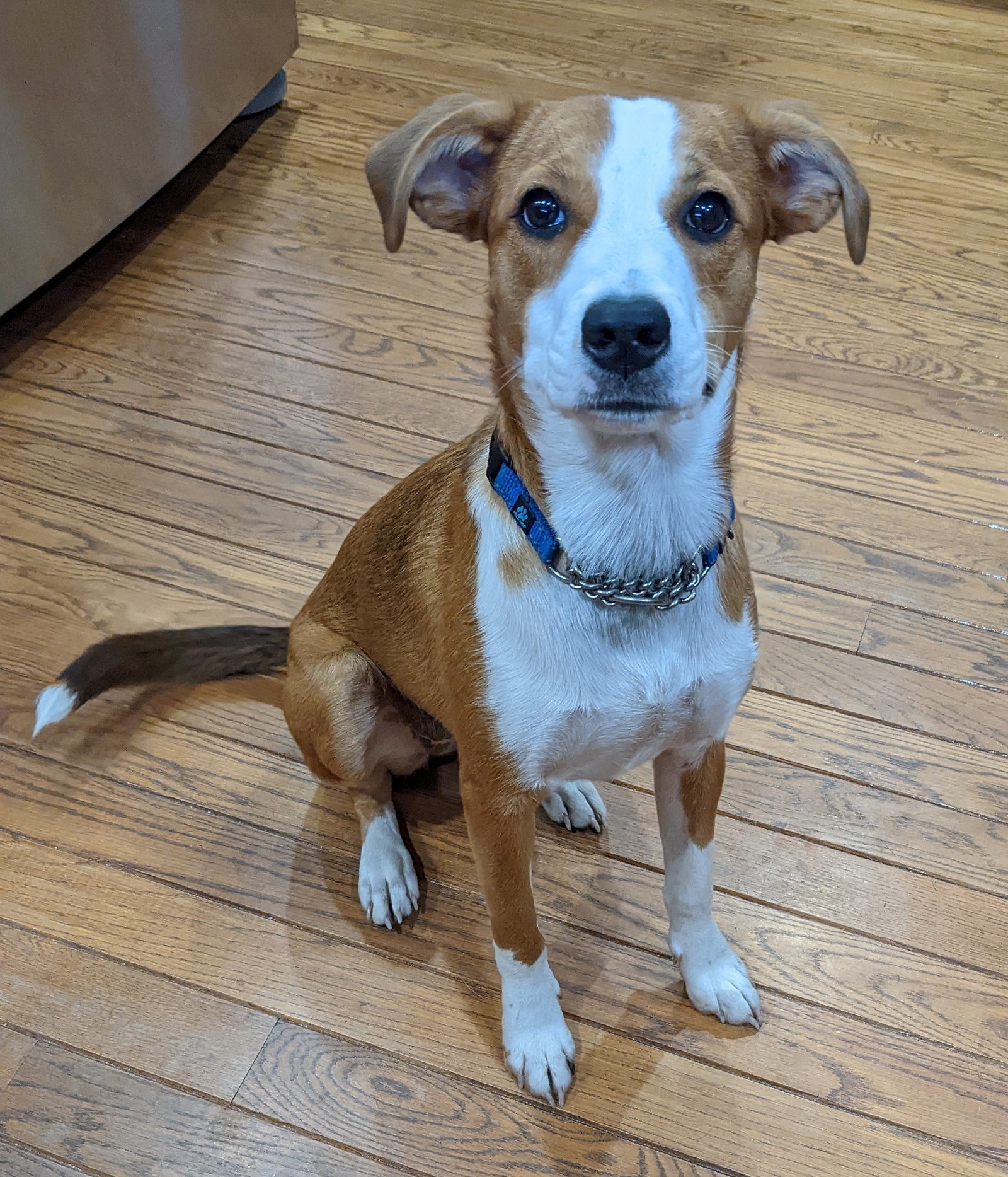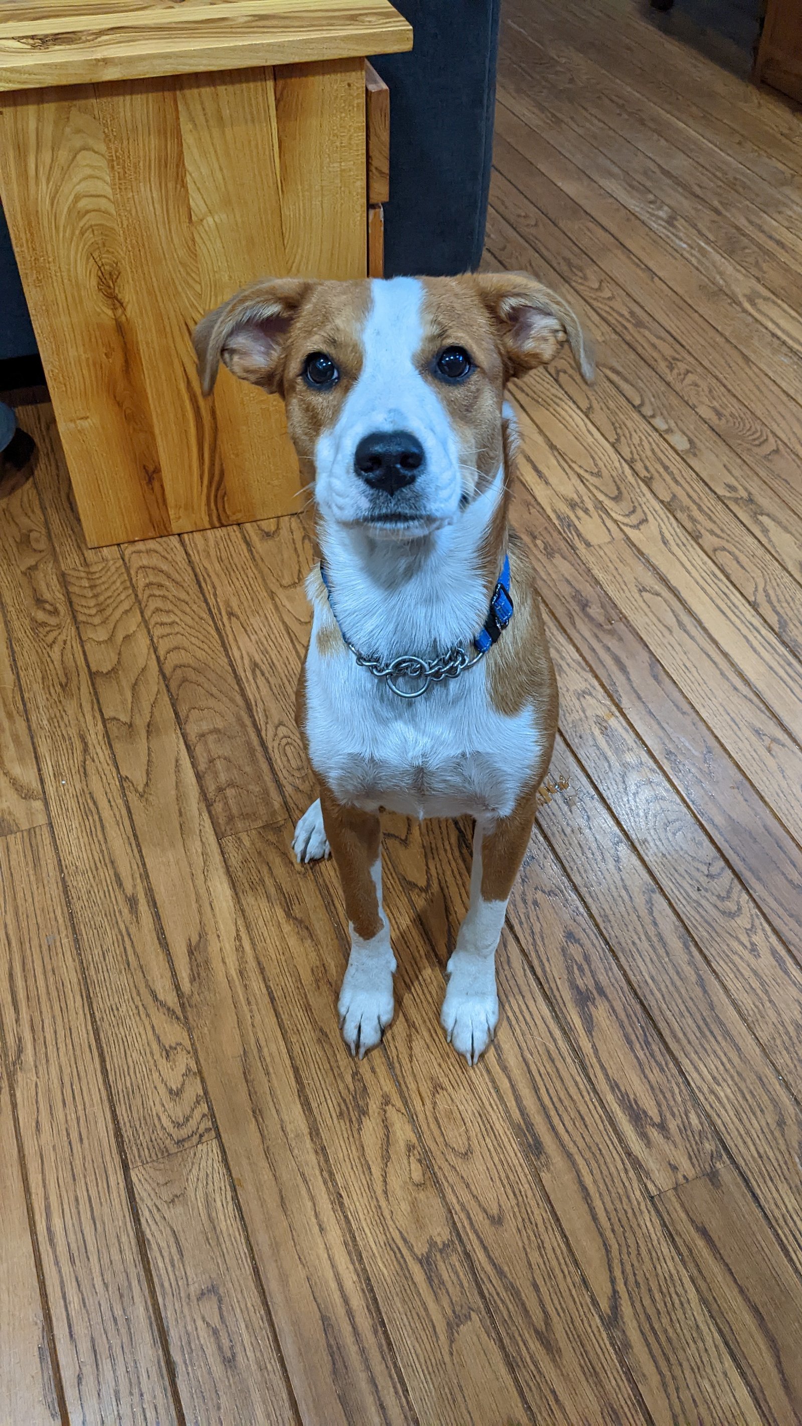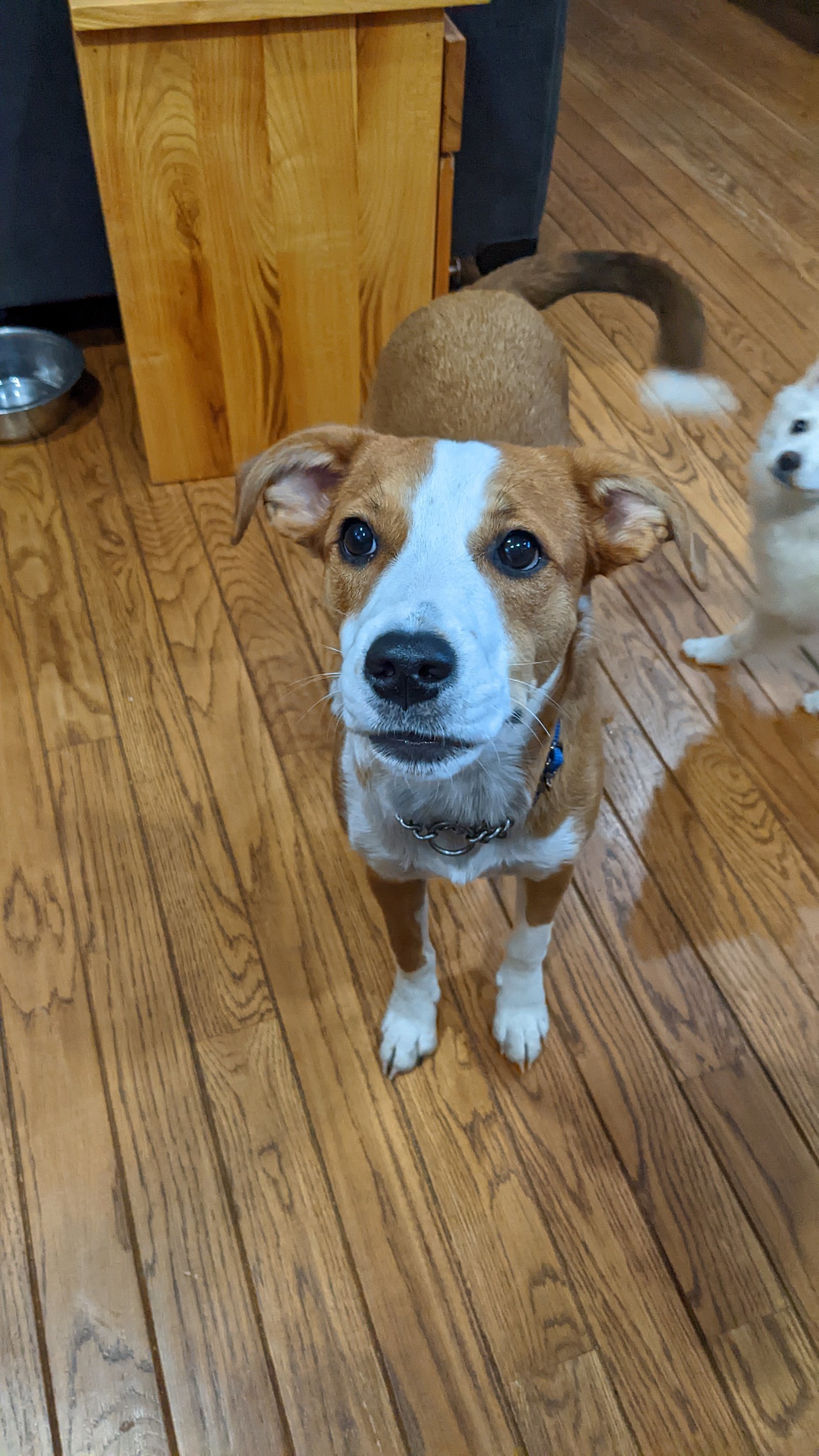 Marigold is a 9 month old, female, 35 lb., possible Border Collie/Terrier Mix that came to us from Oklahoma. She is doing well with house training but she needs to be on a consistent schedule since she does not yet alert when she needs to go outside. She is kennel trained. Marigold spent her first couple of weeks with us in a foster home where she was not compatible with the resident dog. Since being transferred to a new foster home a few weeks ago she is doing very well. There are several dogs, large and small, in the home and she does well with all of them, but she did have a few spats on occasion the first few days. Marigold does have some resource guarding with her food bowl so she needs to be fed separately. She does have some anxiety when left alone, but that has resolved itself with the companionship of the other dogs in her foster home. Marigold needs a consistent schedule and a family that can continue working on her training. It takes a few weeks for Marigold to settle into a routine but once she does she is a happy-go-lucky puppy! She did well with that cat in her previous foster home but has no access to cats at this time. Marigold does well with kids too, but her energy level may not be suited to the toddler age because she could easily knock them down. Marigold is a gem and with time to adjust and continued training she has the potential to be the perfect dog! If you are interested in meeting, please complete an online application at https://hopeanimalrescueofiowa.duplie.com/forms/196/dog-application Adoption fee is $300 which includes spay/neuter, microchip, and age appropriate vaccines.