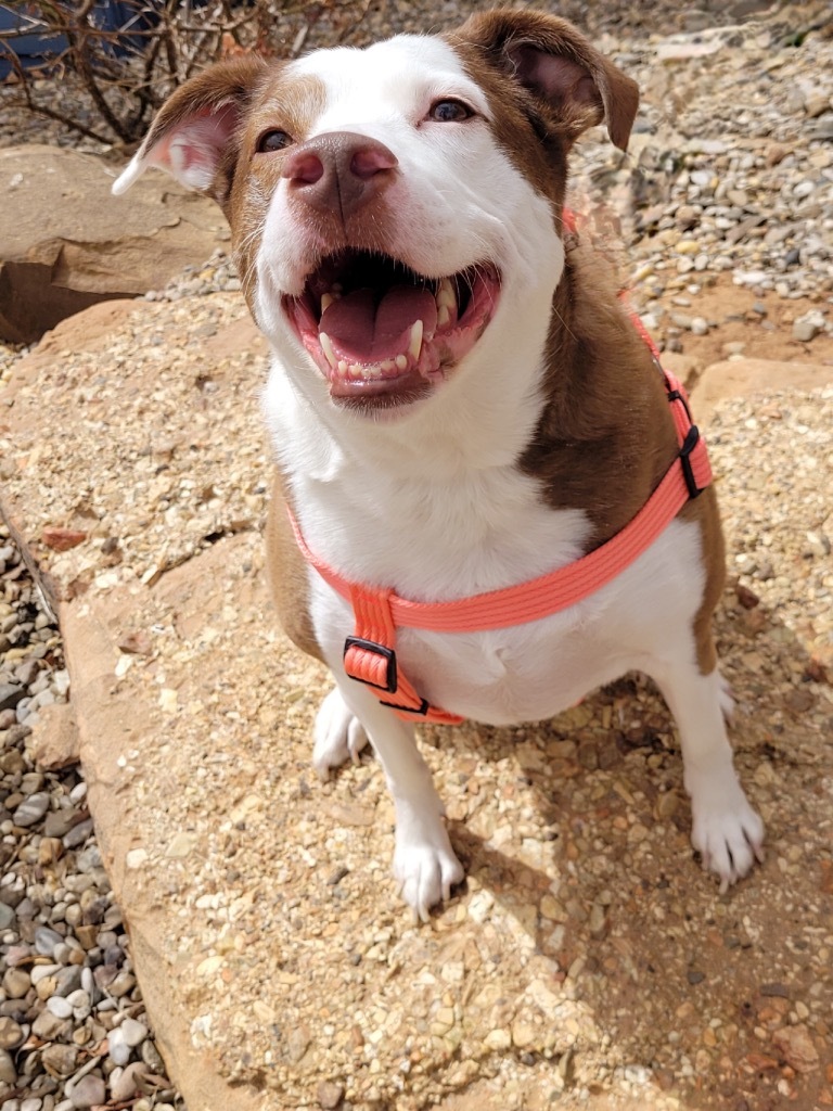 LILY is a gorgeous mixture of the Terrier-Aussie-Cattle Dog-Collie varieties. Well never know for sure, but the result is a stunning brown and white beauty! 5 year old Lily is a bit on the heavy side though (58 should be only 50lbs), so she will appreciate a dedicated workout partner to help her on her weight loss journey so she can feel comfortable and confident again! Lily takes comfort in the safety of her kennel. She loves hanging out in it. She feels a little out of her zone when she steps out --but with a little coaxing and encouragement, she is amazing. She is generally calm, friendly and good-natured when she feels safe. Lily enjoys walks and gets a little too excited about it. She needs to work on her leash walking/heel command, but shes a smart cookie. She plays well with other dogs her size and has been around kids. Lily may do well in a family that will patiently build her trust back and make her feel loved and wanted again. She would love a patient and understanding new family more than anything in the world. Is it going to be with you? Please come and visit me at the Adoption Center inside PetSmart in Midland, TX! Check out all the currently adoptable pets on www.midlandhumane.org/adoptables