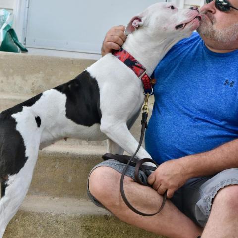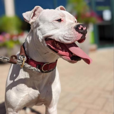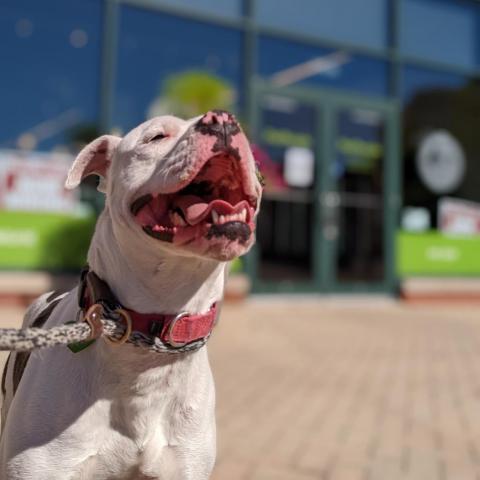 Dana is our fun and playful girl! She can be extra excitable when she first comes out of her kennel, but she settles down quickly once she gets a chance to stretch her legs in the yard and then does a great job walking on the leash around the trail. She likes to chase after balls, especially when they bounce a few times, but hasnt quite mastered bringing them back in order to play fetch. Danas secret skill is that she can climb fences, so she will need to be closely supervised when shes off-leash! Dana is looking for a foster home to help relieve kennel stress. Dana comes with 4 sponsored training sessions with GoodPup!