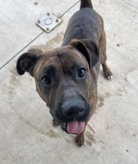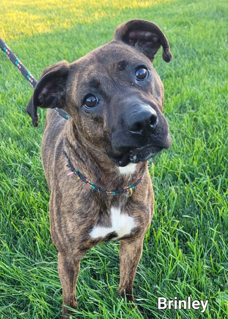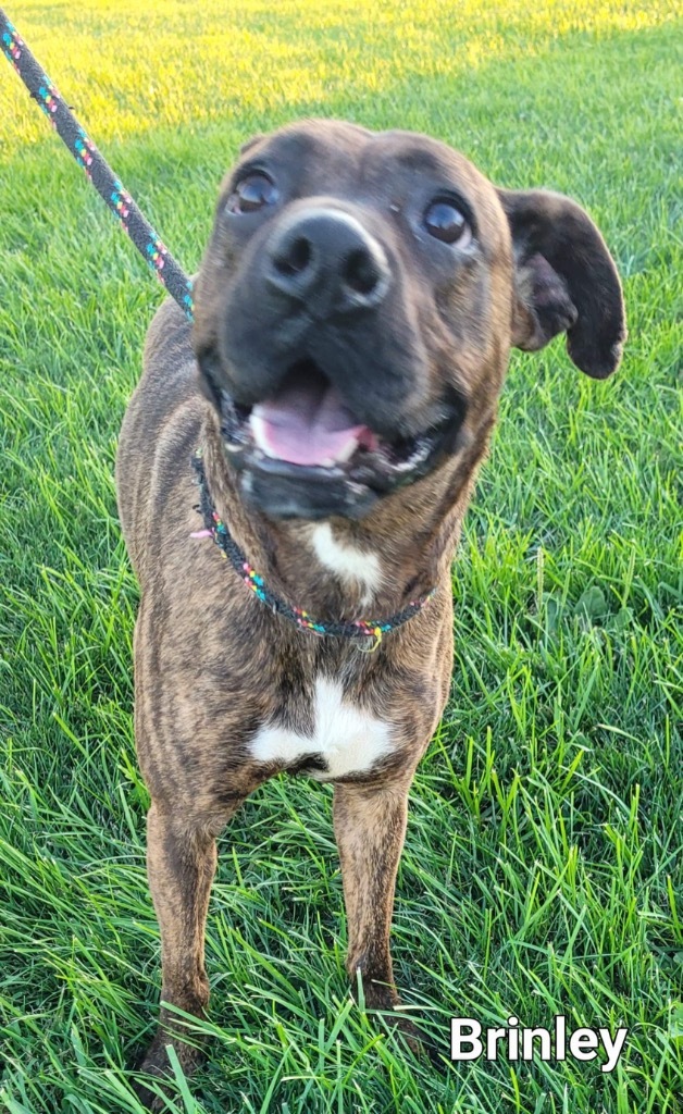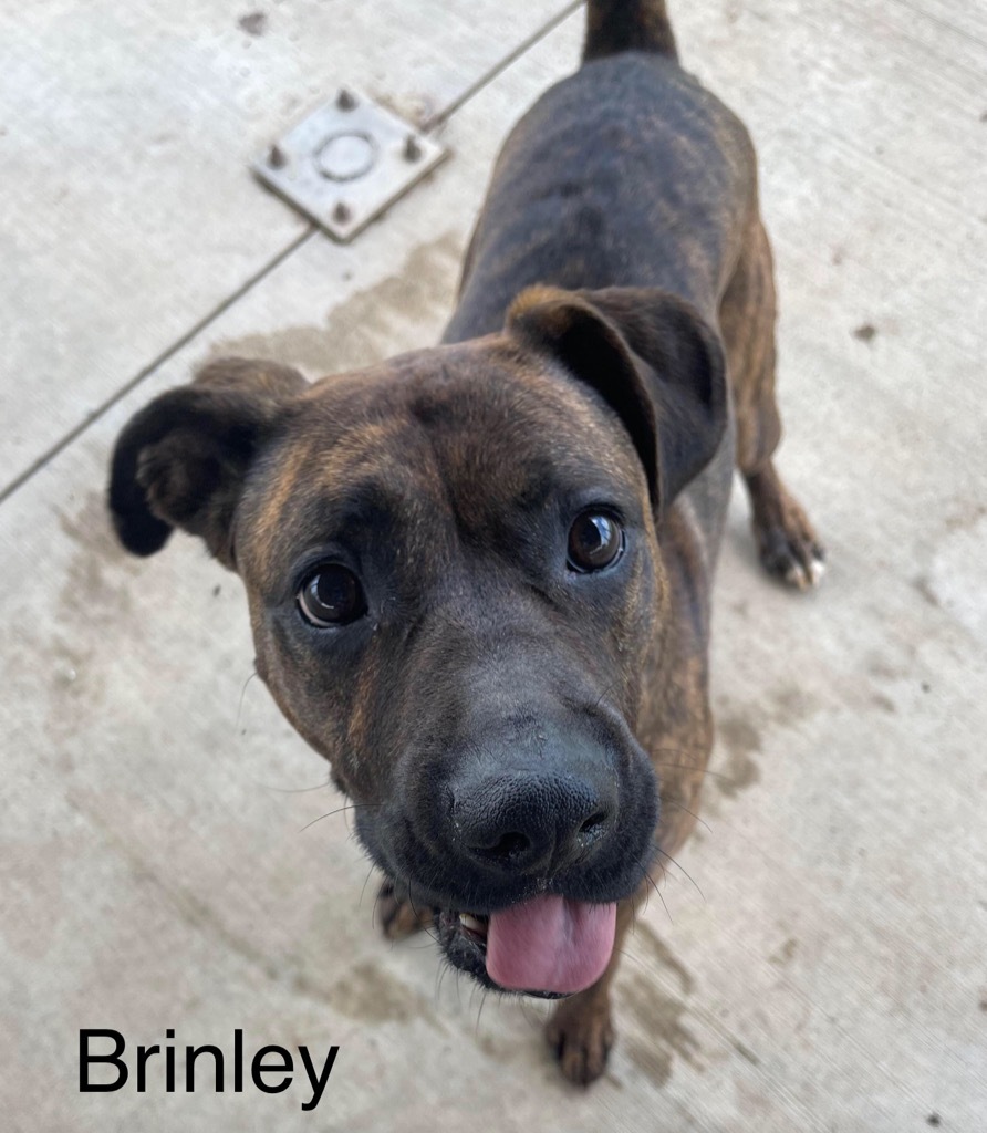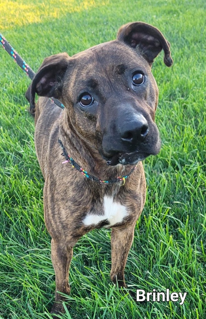 This striped beauty is Brinley! Brinley was found as a stray and was never reclaimed by her previous people. If you couldnt tell by her mugshot, Brinley has a really silly, playful personality. She can be a little shy at initial meeting, but she comes out of her shell quickly! Because shes so new and we dont know much about her past, we are still figuring out her specific quirks. She doesnt seem to mind the other shelter dogs and keeps a pretty tidy kennel if let out regularly. We have not tested her with cats, but with her sweet self, were hardly concerned! Does Brinley sound like your kind of gal? Apply for her today! **Spayed, microchipped, heartworm negative, and UTD on vaccines & monthly prevention**