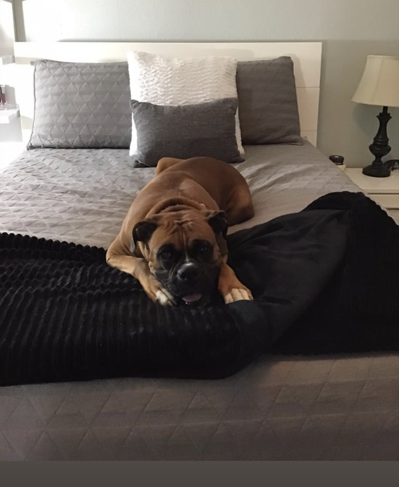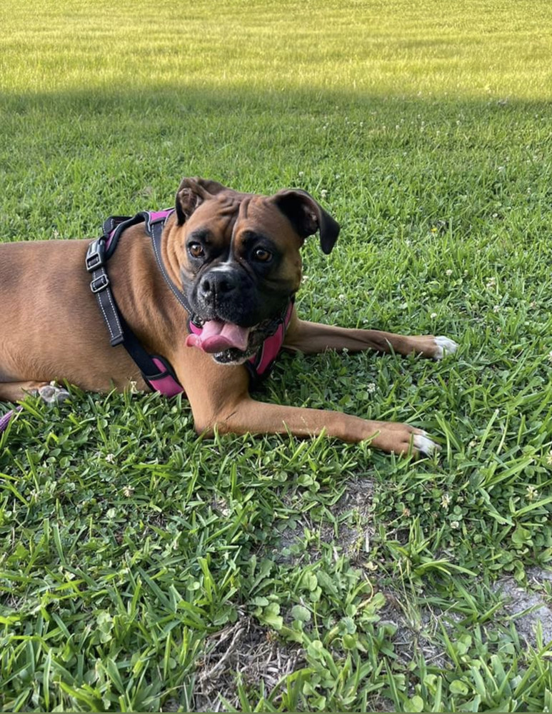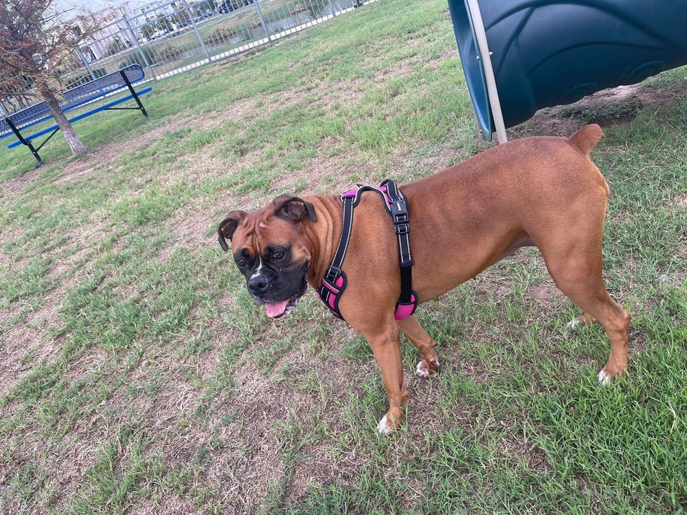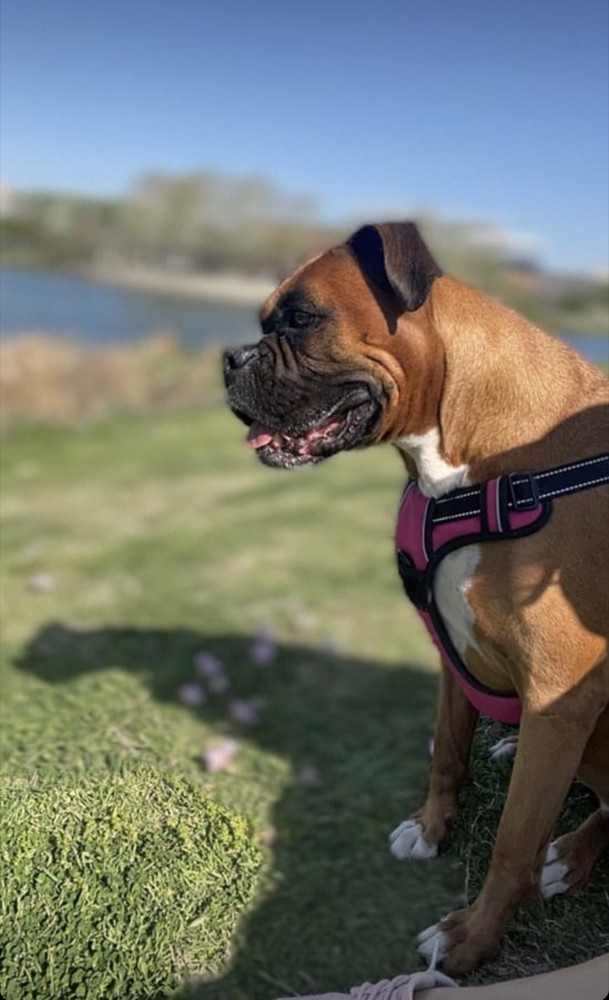 9/25/22 Lola is a classic boxer beauty! She is a deep fawn 5 year old female with natural ears and a docked tail. She is friendly, active, smart, playful, calm, quiet, protective, obedient and affectionate. She likes attention, lounging on the sofa, her teddy bear and riding in the car. Lola has never shown any aggression toward people and is good with children. She likes dogs, but has no experience with cats. She is house and crate trained, but doesnt love being in her crate. She does not dig or jump gates. Lolas current family is unable to provide the time or attention she needs. Lola would love an active family with time to play, walk, exercise and snuggle her.