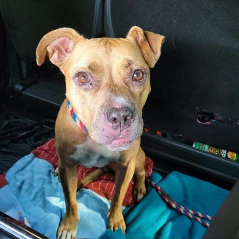 This is Libby (Liberty), she is a small pitbull who was recently pulled from WAS. This little girl is enjoying life outside the shelter. She loves being with her people whether inside or out. She is amazing in crate, loves car rides and doing well with leash, sit, down and stay training. Super smart but also a bit stubborn. Very food motivated. Going for dog testing next week as our group (2 bostons and 2 bonded larger boys) dont seem to be a good fit for her. She is very playful but needs work with her focus. Would do great with an active person(s) but settles into being a couch potato quickly. Likes kids but needs work with her food and toy obsession to feel comfortable with kids playing or eating around her. This girl is 45 lbs of pure muscle. She considers herself a lap dog. She requests a kiddie pool or large water bowl to get her water fix everyday. Overly obsessed with the hose so needs work to break that fascination. In our eyes, she is 100% adorable. Visit www.beautiesandbeasts.org for more details.