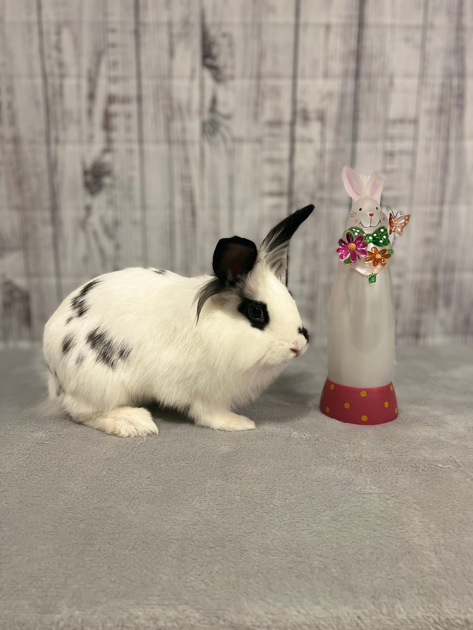 You can fill out an adoption application online on our official website.Meet Cleopatra. Isnt she striking? What a classy little lady! This little girl was found by a Good Samaritan. She was severely underweight and not eating. Our wonderful foster nursed her back to health, and she rewards us with joyful binkies galore! She loves to burrow under blankets and play "peek-a-boo". Shes a hoot to watch! She lives for petting and does not mind being picked up. Bedtime blueberries are her weakness. Cleo is about 5-6 months old (posted July 22) and is ready for her furver home. Find out more about our adoption process on our web site and fill out an application if you would like to be the lucky one to give Cleopatra the great life she deserves.WWW.NEWBEGINNINGSRABBITRESCUE.ORGClick here to watch a video of Cleopatra.