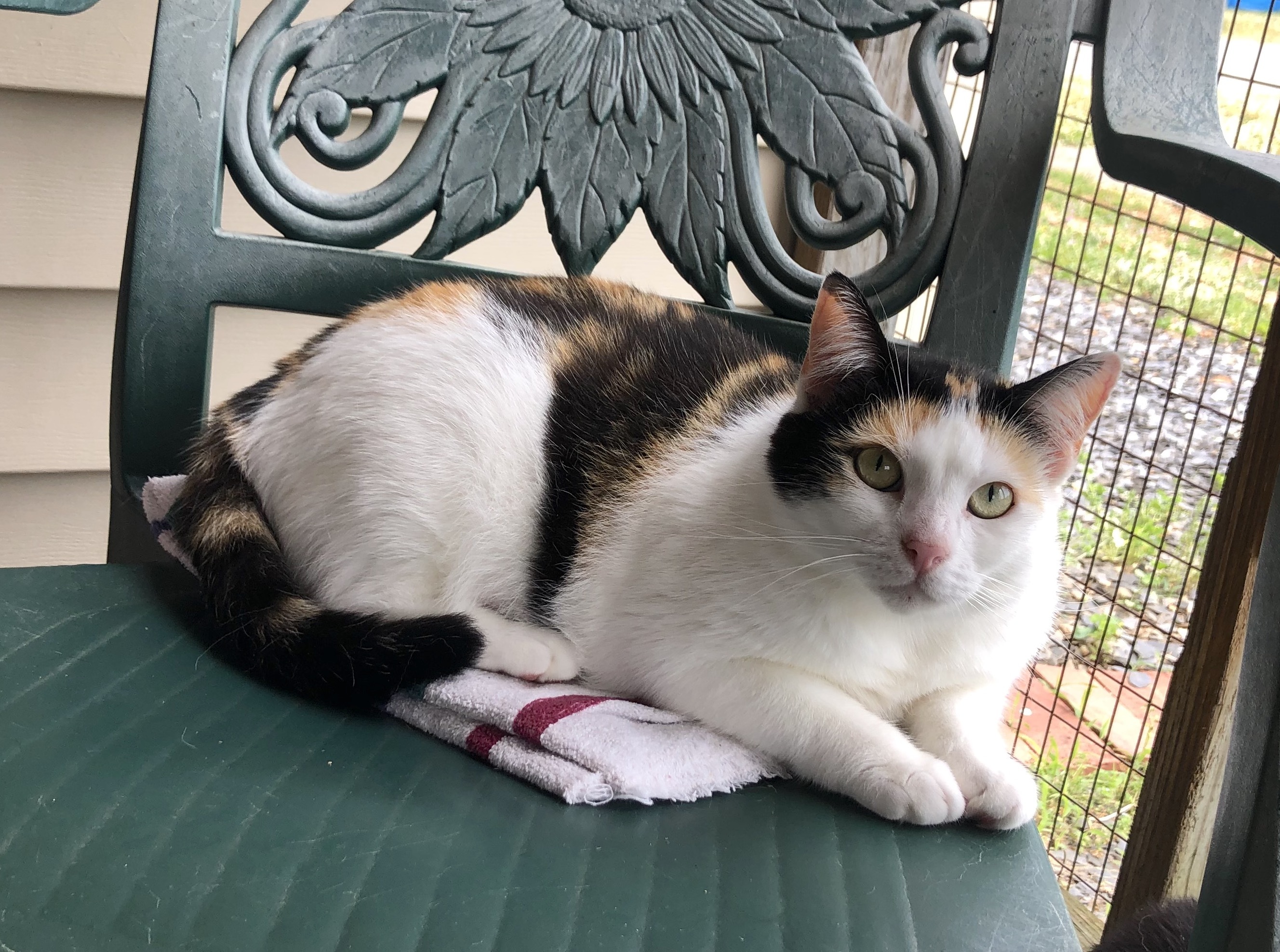 SINGLE MOM LOOKING TO MINGLE! THE BASICS: DSH, calico ADULT FEMALE; EST DOB: 2018 ARRIVAL: May 19, 2020 HISTORY: Patsy Cline was trapped as a stray behind the Zion’s Crossroads Lowes with her five kittens. We found Patsy Cline as a struggling single mother of five kittens. Since entering the shelter, all five of her kittens have been adopted, which leaves Patsy free to pursue her own happiness! Patsy is still a bit shy around people and likely won’t let you pet her at first. She has, however, shown us glimpses of a sweet, friendly cat just waiting to emerge! Patsy has a beautiful, melodic meow that she only shares with those she trusts. Give her time and she just might share her meow with you!