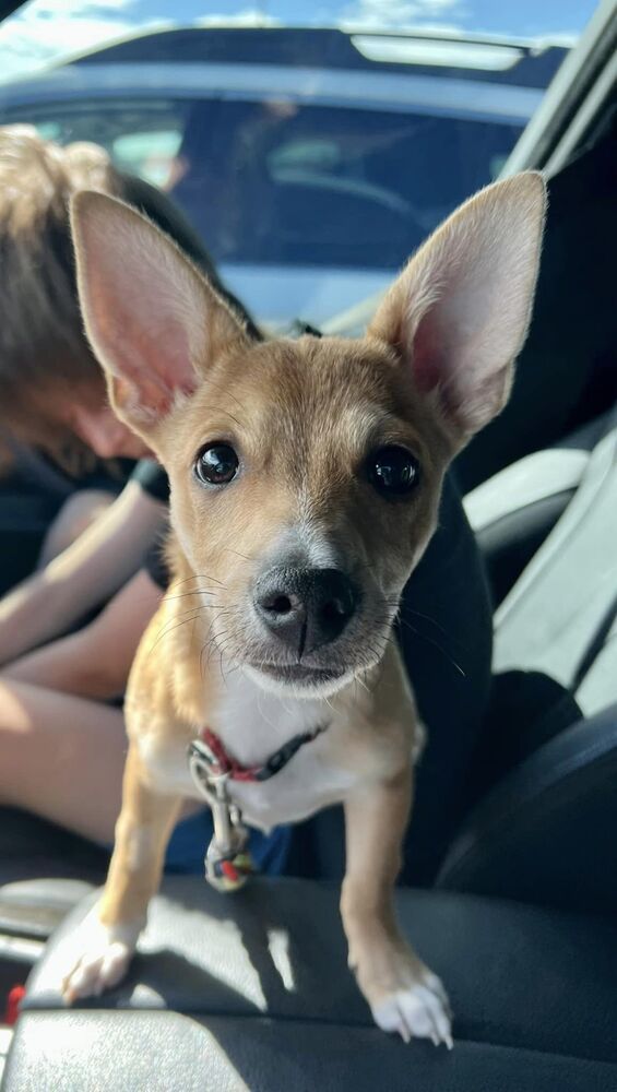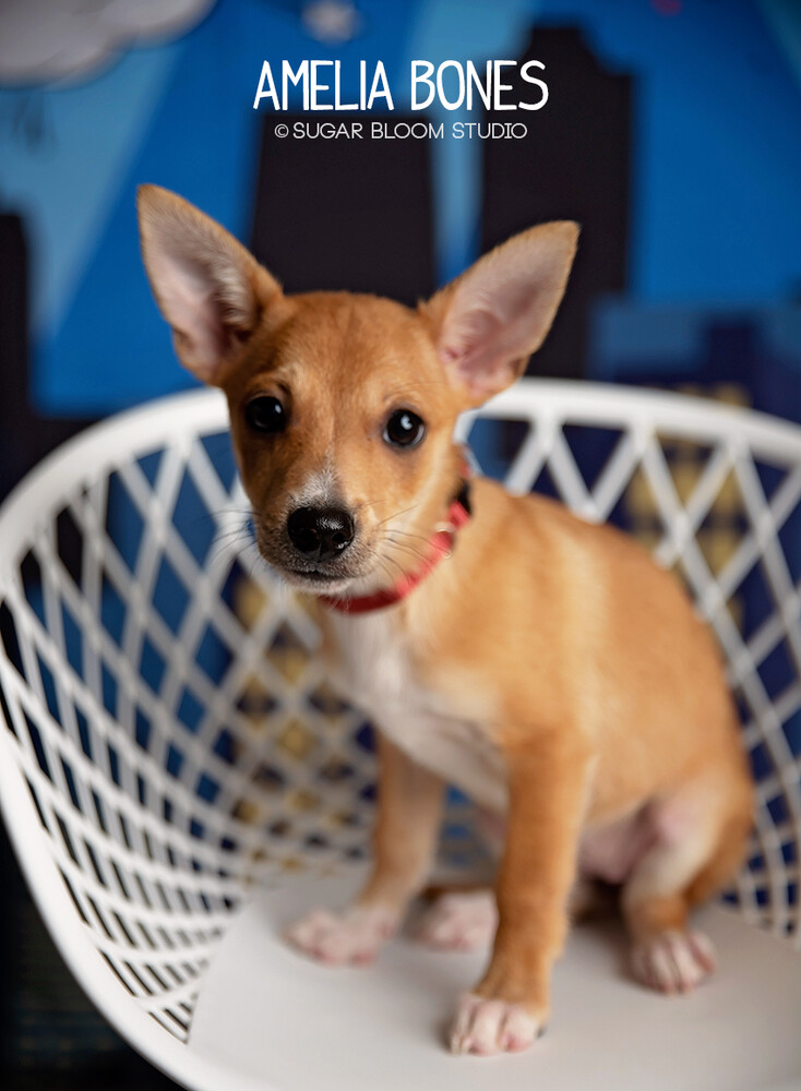 Hello there, Im Amelia Bones! I am a little puppy who is just as sweet as I am cute! Im a female 2-month-old cattle dog mix and am up to date on age-appropriate vaccinations, spayed, and microchipped. I just arrived in Colorado and my foster already has me posing in a dumb hat. Ill allow it because I just roll with whatever the humans or fur friends are doing. I love to nap and if there was a prize for cuddling the best, I would definitely win first place! Did I mention that I love to nap? I am one of my smaller siblings and my foster thinks that I might be small/medium size when I grow up. However big I get, Im perfectly designed to go on every adventure with you (or not, we can stay home thats cool too)! Did I mention that Im easygoing? Apply for me today and we can meet up and discuss how much youre going to spoil me when you adopt me. Adoption fee includes the following: \tSpay/Neuter \tRabies Vaccination \tDistemper / Parvo Vaccines (includes series of 3 for puppies) \tBordetella \tMicrochip with prepaid lifetime registration \tDeworming