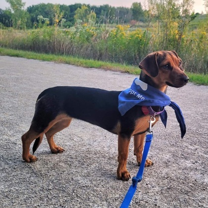 Hi there! My name is Doll which suits me both with looks & behavior. Im a petite, lively little loving jumping bean that is also snuggly sweet. MY WHOLE STORY I am young, somewhere around a whopping 10-12lbs and Im guessing Ill stay this size. AHF says Im the well-known mix of chi-weenie (dachshund & chihuahua) but I am as looong and lean as the next Doxi. I go in on October 5th for my spay. I came from a hoarding case in Alabama with lots of dogs but that hasnt ruined my zest for life or love for others. I LOOOVE to play with big and small dogs alike - but I appreciate those with a respectful, gentle approach. That being said, I am a little more skeptical and subdued around unfamiliar humans. But once I know and trust you, I love with my whole heart. I am not yet kid tested but due to my size and unique shape with my luxuriously long spine, I definitely need older, respectful kids in the household and apparently, I dont care about cats. Im working on my potty training and using pee pads while youre gone. I spent weeks in a cage at the AHF kennel, so I know I can be crated, but I much prefer to be free - especially at night with my fur siblings and foster momma. Im lucky enough to stay in a gated portion of the house with a bed, crate, and toys...without rugs or carpet - just in case. Im a good girl and dont get into mischief. At night, I want nothing more than to snuggle in bed with you if youll let me. And trust me, I am the best snuggle buddy! Ill be honest, Im learning to have confidence on a leash. Foster mom says I have the cutest little trot but Im super cautious of anyone/dogs walking behind me. I much prefer to sprint & romp around in a yard with my doggy siblings. I am SUPER speedy and playful - and Ive perfected an adorable play bow and bounce like a bunny to pounce on my friends. But dont worry, I dont have an aggressive bone in my body. I just know I really Really REALLY need a yard and a little lively, patient play buddy. Adoption fee is $320 Email: dogs@almosthomefoundation.org Almost Home Foundations adoption requirements: (1) Be at least 21 years of age; (2) Have the consent of all adults living in the household; (3) Have approval from the residence owner; (4) Have valid ID with current address; (5) Be approved by Almost Home Foundation as a suitable adoptive home; and `(6) Live in the suburbs surrounding Schaumburg (Illinois Residents only) *** Please note that Almost Home Foundation accepts only cash or checks for adoption fees; we do not accept debit or credit cards. ***