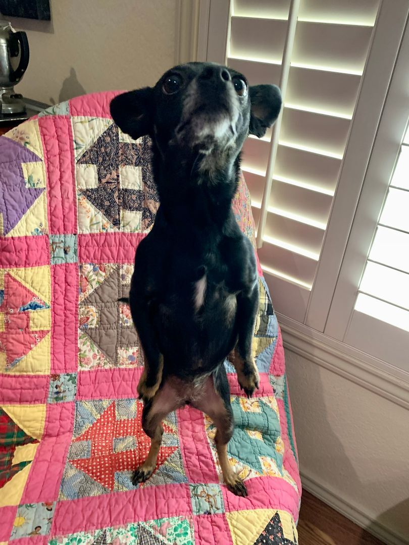 Tinker is about 5 to 6 years old and weighs around 11 pounds. She is doing great in her foster home. She is ok with the other dogs and the cat in her foster home but would also be ok as an only dog. She is alert, active and curious but not excessively energetic. She likes to sit with her foster parents and watch TV in the evenings. Tinker is microchipped, spayed and up to date on shots and has tested negative for heart worms. Her adoption fee is $120. If you are interested in Tinker send us an application (found on our web page) or call Linda at 817-564-2085 for more info.