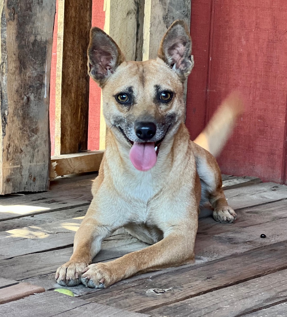 Falafel is a super mutt. She is probably a mixture of a hundred different breeds and that makes her 100% perfect. She is friendly, charming, affectionate, the perfect size, great with other dogs. She is just wonderful.