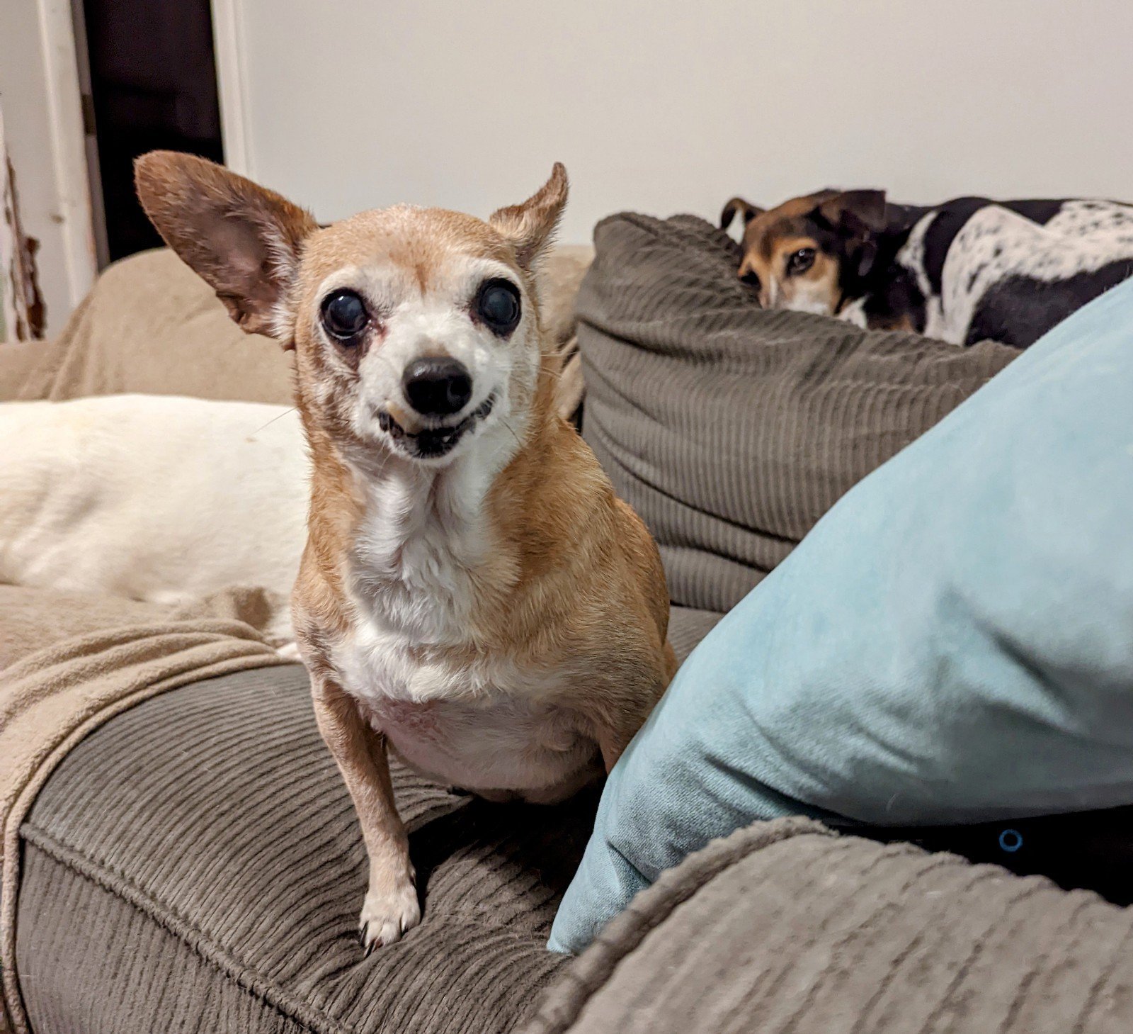 You can fill out an adoption application online on our official website. wagoninn.rescuegroups.org Alice is a senior chihuahua who is looking for a home! Alice is estimated at 12 years old. She arrived in May and needed some decompression time in her foster home to learn to trust and love again. We cant say what happened to Alice but she was terrified of humans when she ended up in the shelter in New Orleans, so terrified, she would not let anyone touch her. It took about a week or so in foster care until she would allow basic pets. From there we worked on more pets, touch and love and eventually were were able to pick up Alice. She absolutely loves her foster mom now and her foster dog siblings and she is ready to find her forever. Alice is an easy keeper. She is housebroken but would do best with a fenced yard as she is very sensitive around her neck and prefers not to be on a collar or leash. She is content to go out in the yard a few times a day, loves mealtime and loves to snuggle with mom on the couch or in bed. She is a perfect, easy girl for a quiet home. We dont think Alice will do well with kids or a busy house. Alice has been fixed, microchipped and she is up to date on vaccines. Se tested negative for heartworm in April 2022. She also had a dental cleaning and some teeth pulled recently. Her adoption fee is $250. How to Adopt Me! If you are interested in learning more about me, and possibly making me part of your family, please go to wagoninn.rescuegroups.org . Click on the orange Online Adoption Application button to fill out an application. A Wag On Inn volunteer will be in touch soon!
