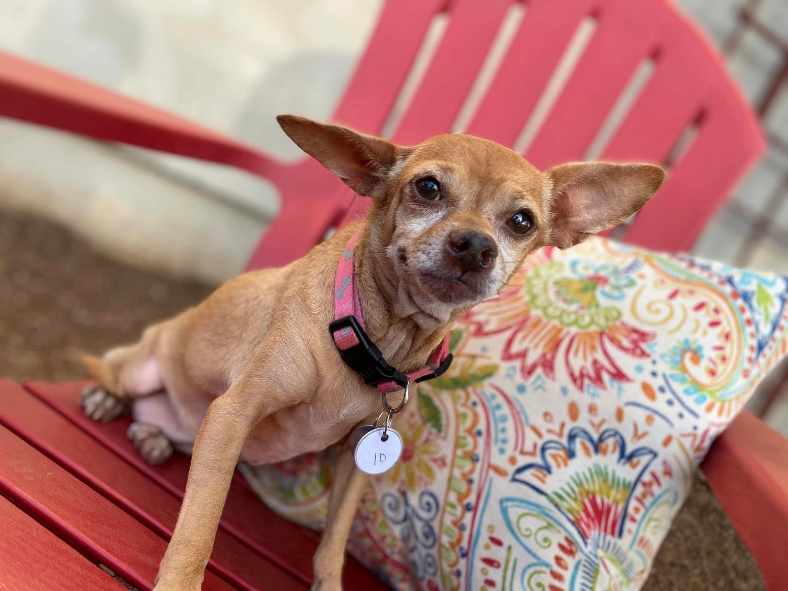 Meet Heidi Ho! Heidi Ho entered Chula Vista Shelter as a stray, and when she wasnt claimed during her hold period, we scooped her up to become a Frosted Face on September 9th. Heidi Ho is about 10 years old and weighs 13 lbs. She is very sweet, but understandably, she has been a little nervous in her new environment at FFF. Heidi Ho has already had bloodwork, x-rays, and an exam with our onsite veterinarian, Dr. Russell. She will be having a dental in mid-October to get her mouth in tip-top shape! Heidi Ho enjoys going on our weekly Sunday hikes and walks nicely on a leash. She also likes to be held and to sit on laps. Heidi Ho just left for a two-week Frosted Fling so we can learn what she is like in a home setting. We received a great first update from her Fling Dad: "Heidi is on Day 3 of her Frosted Fling and doing great. Shes walking better on her leash and has been sleeping a lot. Shes vision impaired but can see shadows. Shes doing great with my other dog who has been showing her the ropes." Check back soon for the next update on Heidi Hos Fling! To make Heidi Ho part of your family, please complete our Placement Questionnaire at: www.frostedfacesfoundation.org/apply Learn more about our programs at: www.frostedfacesfoundation.org/family No adoption fees, and we provide free lifetime medical care onsite at FFF Veterinary Hospital! Questions: adopt@frostedfacesfoundation.org Updated: 10/4/22