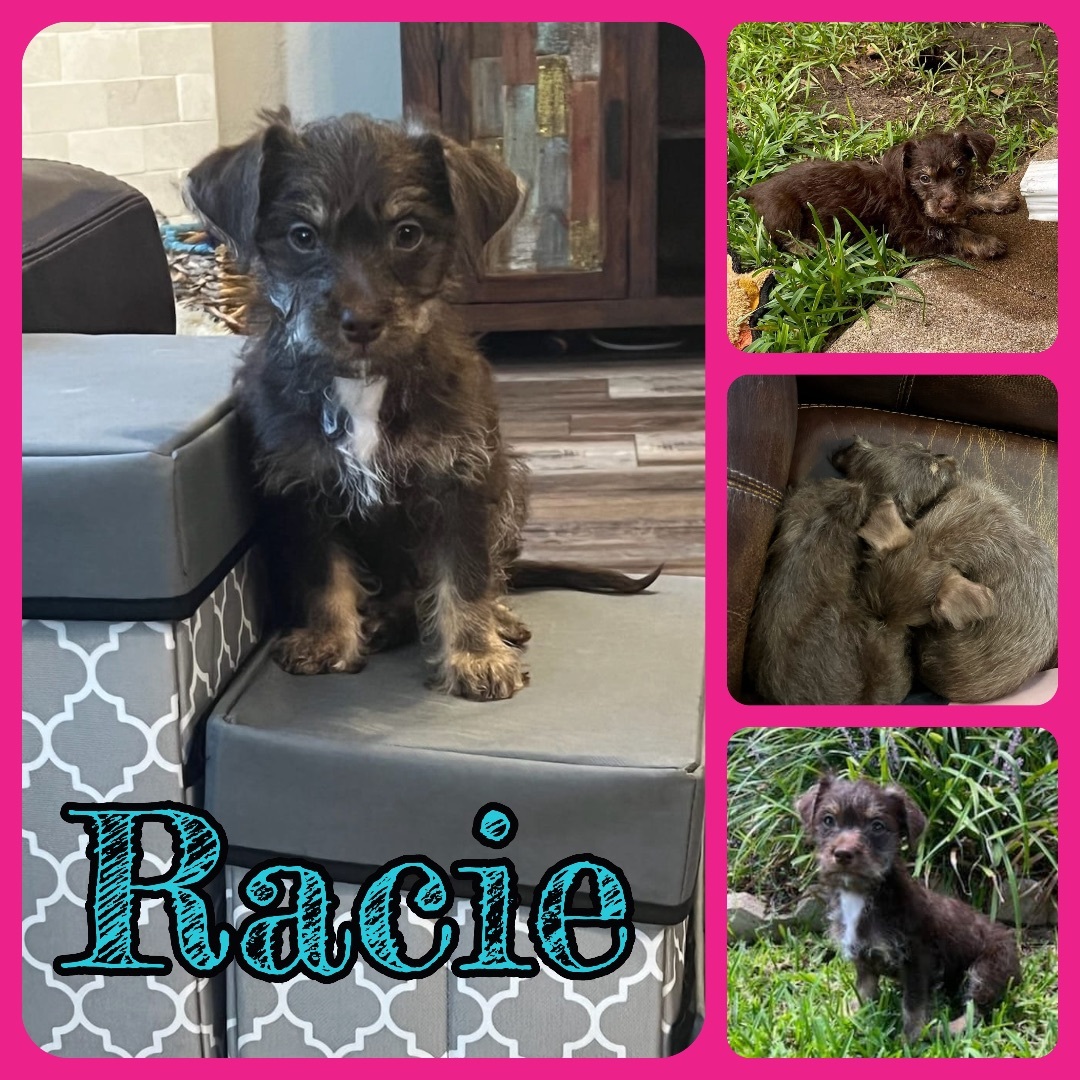Racie is a 10wk old, female Chiweenie. She is a petite girl, weighing in currently at about only 5 lbs. She is a shy girl that you can often find doing her own thing. She is still working on her confidence so she needs a patient, calm home that will give her time to settle in. She loves to romp & wrestle in the yard with her sister. She would love to find a home with another small dog that can help her acclimate. She is still learning all her indoor skills. Due to her small size she does not qualify to a home with kids under 8yrs old. No apartments. TO ADOPT: www.almosthomerescuetx.org EMAIL: Almosthomeanimals@yahoo.com ** You can check out all her funny antics on our FB page** https://www.facebook.com/Almost-Home-Animal-Rescue-603130489724091