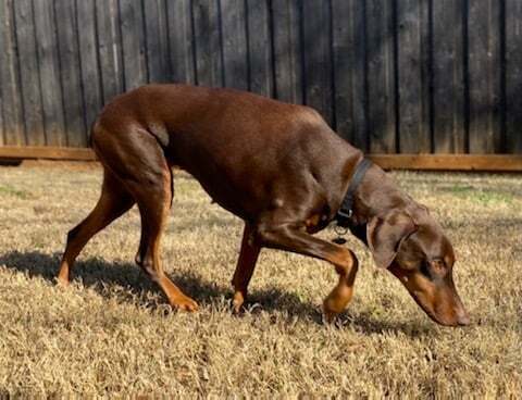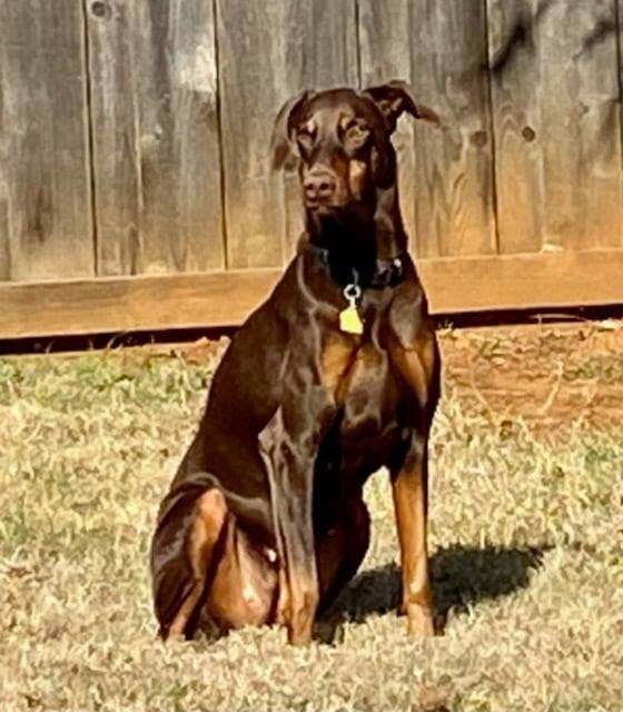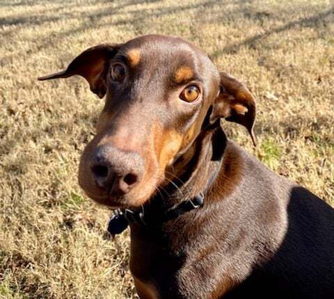Megan is a very petite red female, natural ears & docked tail. She is approx 3-4 yrs old, very sweet & chill. She is shy/timid in new situations. She is good with other dogs who are chill & same size or smaller than her. Bigger dogs intimidate & scare her. She feeds off other dogs for confidence, and could be an only dog with a very patient owner as she will be less confident without another dog to lead the way. She rides great in the car, walks nicely on a leash, but again shy on walks unless she has another dog there for confidence, however walks are not necessary. Shes happy to just hang at home with her people. She is potty trained & can also stay loose in the home without accidents or being destructive. She is also crate trained. She is a wonderful girl who is an excellent companion dog. She just needs a patient adopter. We adopt to all areas of Texas and parts of OK, AR, LA. To see all adoption eligibility information, fees, & online adoption application: https://www.lonestardobermans.org/education