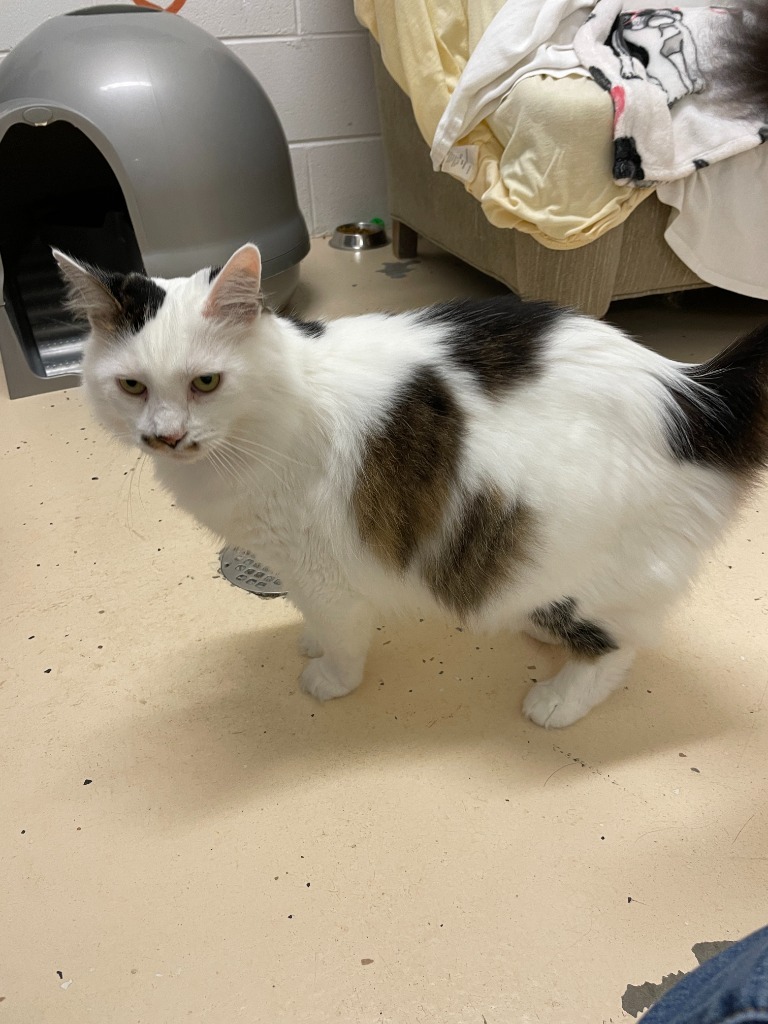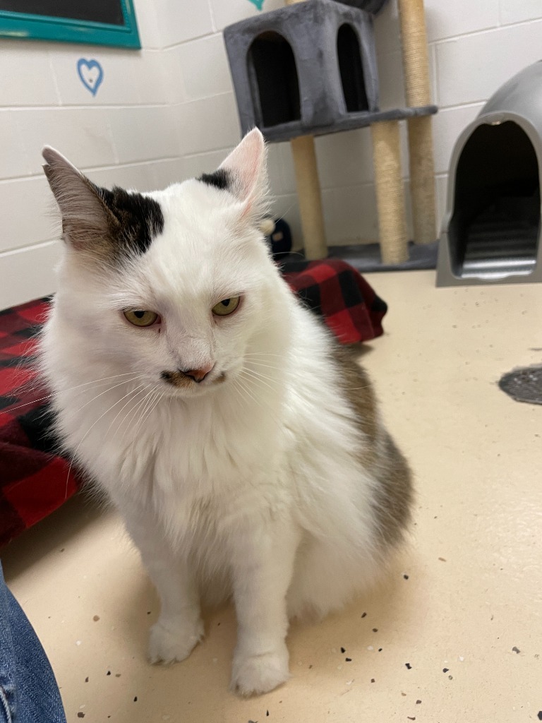 Maude is an 11 year old who came in with her sister Pie (6) when their owner passed away. They are a bonded pair and will be adopted together. Maude is more outgoing than her sister, she loves attention and loves to be brushed.