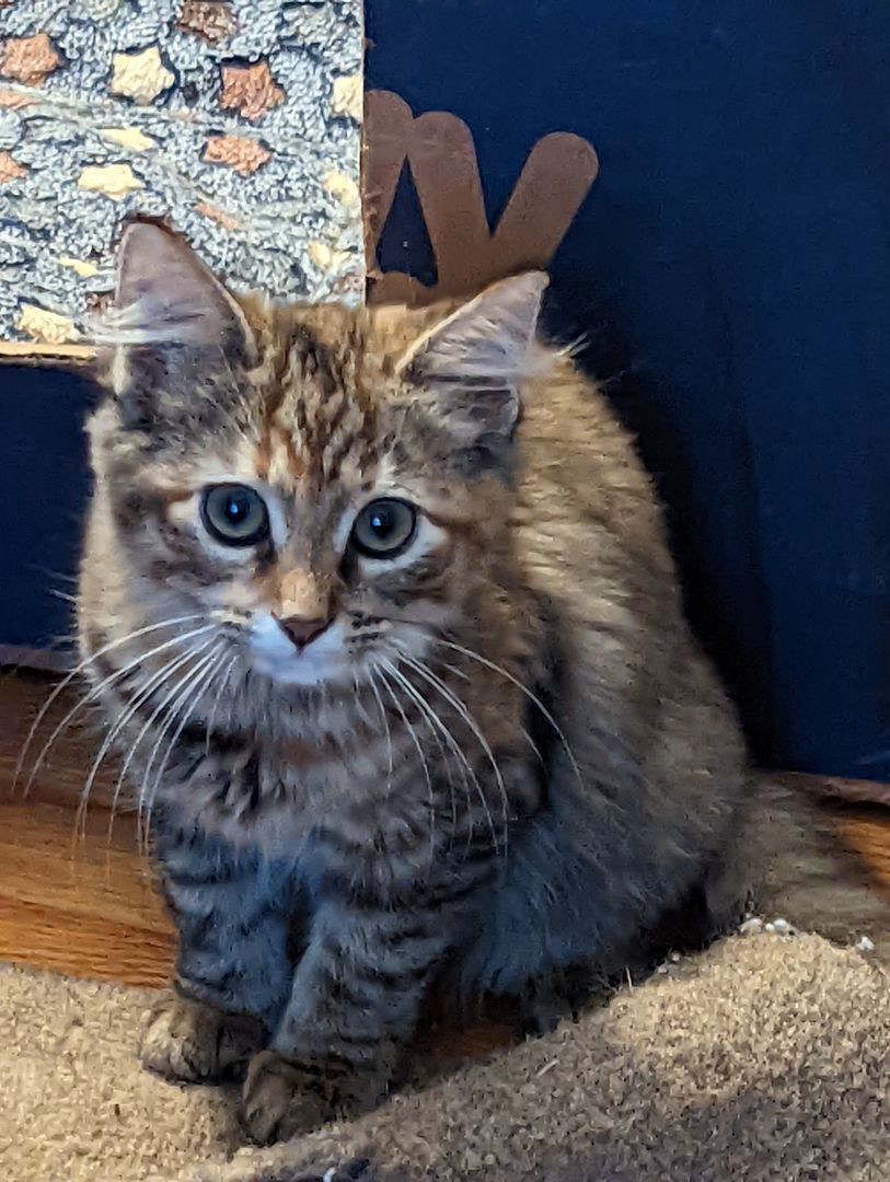 Meet Quinn one of the "Q" cats that came from the Labs with the Quills rescue. Quinn and her siblings were living in a trash filled garage with little to no food when we arrived on scene. Quinn was cautious when she first came into foster care, but has opened up quite nicely and is a very sweet girl. She does love to play with kitten toys! Quinn is up to date on vaccinations, is feline leukemia & FIV negative and will be spayed as part of her adoption fee. She is a long hair fluffy beauty! If you think Quinn is the sweet girl for you please complete an application at www,oswegocountyspca.org