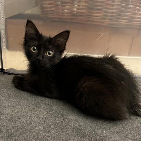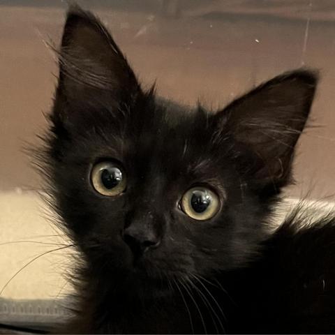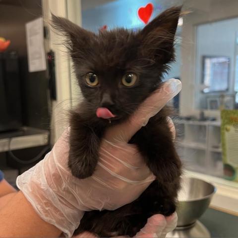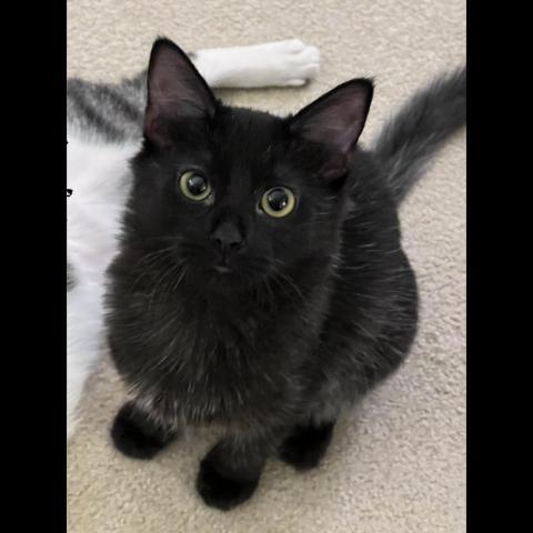 Lemonade is a darling little girl. She is a little skittish at first, but feels a lot better when her BFFs are with her. Lemonade is a little black fluff with a white spot on her belly in the shape of a heart!!! She also has some white hair at the base of her tail, which gives her a very wise and distinguish look! She would be much happier in a home with at least one of her friends (Wesley or Socks).