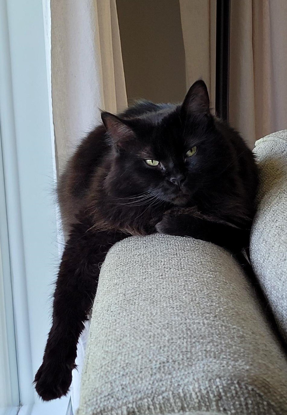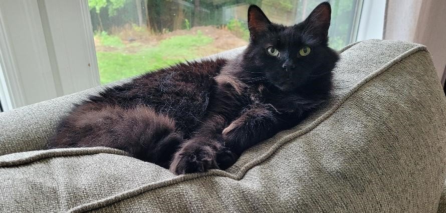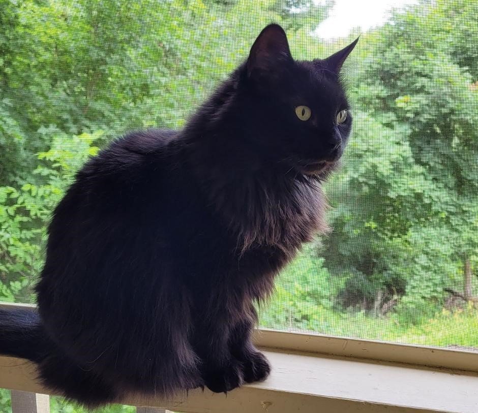 1/1/17 When Kona came to AC PAW after her owner died, she was quite scared in her new situation. She had a lot of cattitude and could be quite sassy and hissy. She took a couple of months to trust her new foster people, but now she has relaxed and become a sweet, friendly girl who can still, however, occasionally be a little feisty. Kona is outgoing and active, likes to watch out the window and chatter at birds and squirrels, and, of course, likes to distract you by walking across the computer keyboard while youre working. Kona has long, luxurious black hair, a puffy tail, and gorgeous green eyes. Because a couple of her front teeth needed to be removed, sometimes her cute pink tongue peeks out. While most cats are so light on their feet you cant hear them walking, Kona has an unusually heavy footfall you can hear on wood floors. It has earned her the nickname Thumper. Like many cats, Kona likes attention on her terms. She loves to be brushed and petted and to be around her people, but when shes had enough attention she may let you know with a swat of her paw. She is not a good choice for homes with little kids. Although Kona lives with other cats, shes bossy and may do better as the only cat in her home. She is cautious of the dog in her foster home, but they get along fine. A friendly dog in her new home would be okay. If you are interested in adopting this AC PAW pet or would like to set up a meet-and-greet please fill out our pre-adoption questionnaire. For more information about our organization, please visit us at https://acpaw.org.