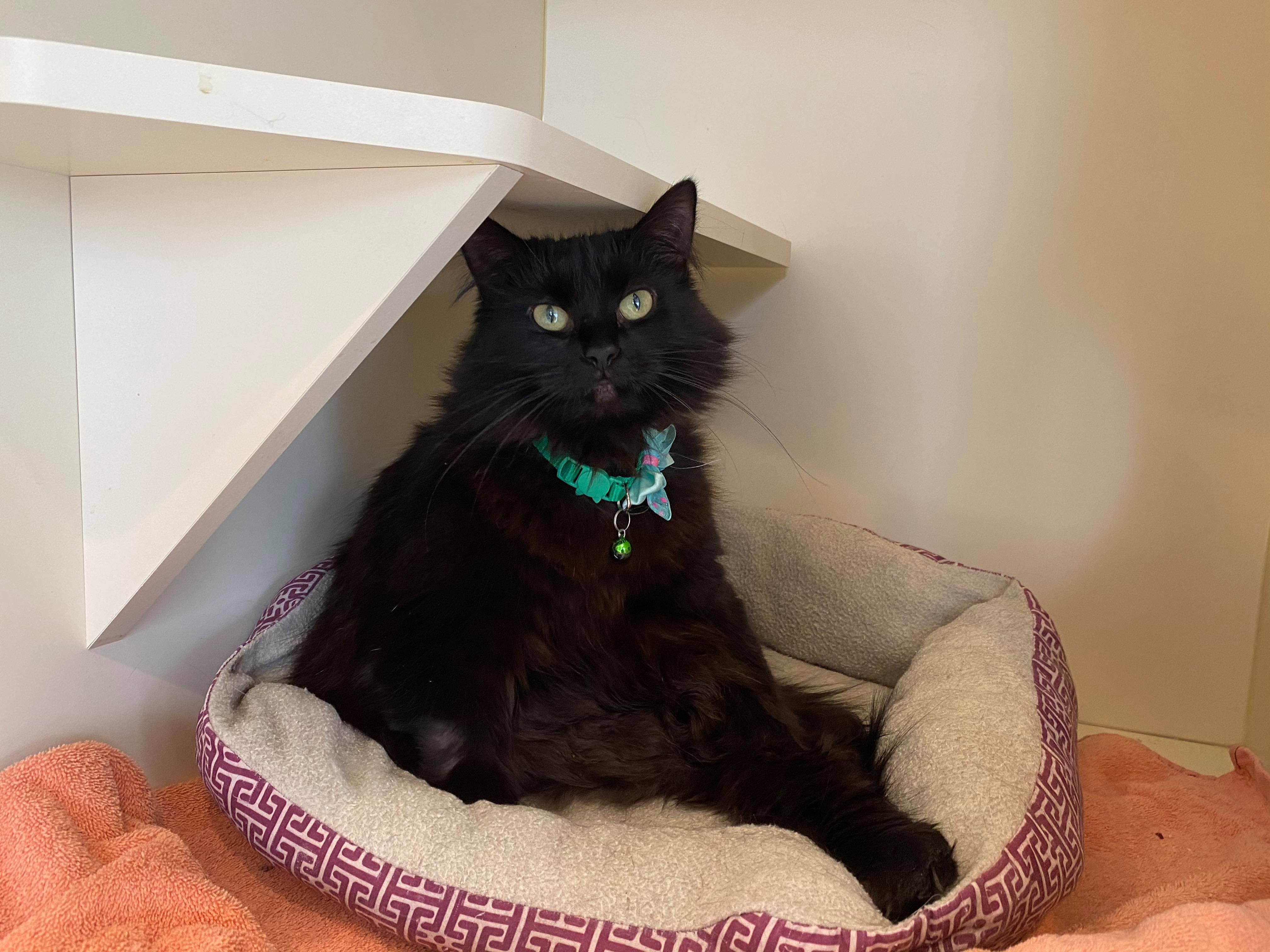 Raven is a stunning ~4 year old black DLH. She is a very sweet, loving girl who loves attention and playing. She is currently in a foster home and her foster raves and raves over her! She is on an allergy diet and must not be able to access other foods. She is also on a single pill she takes well once a day. Raven is spayed and UTD on all vaccines! To apply, please use the following address: https://www.shelterluv.com/matchme/adopt/TCAL/Cat
