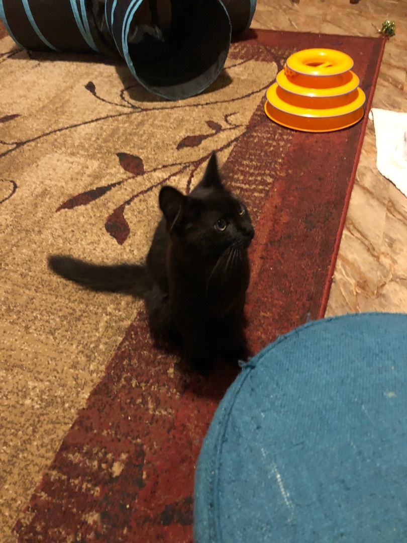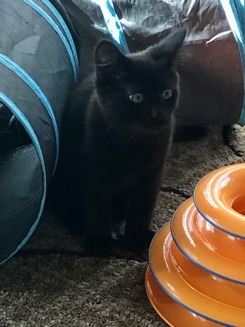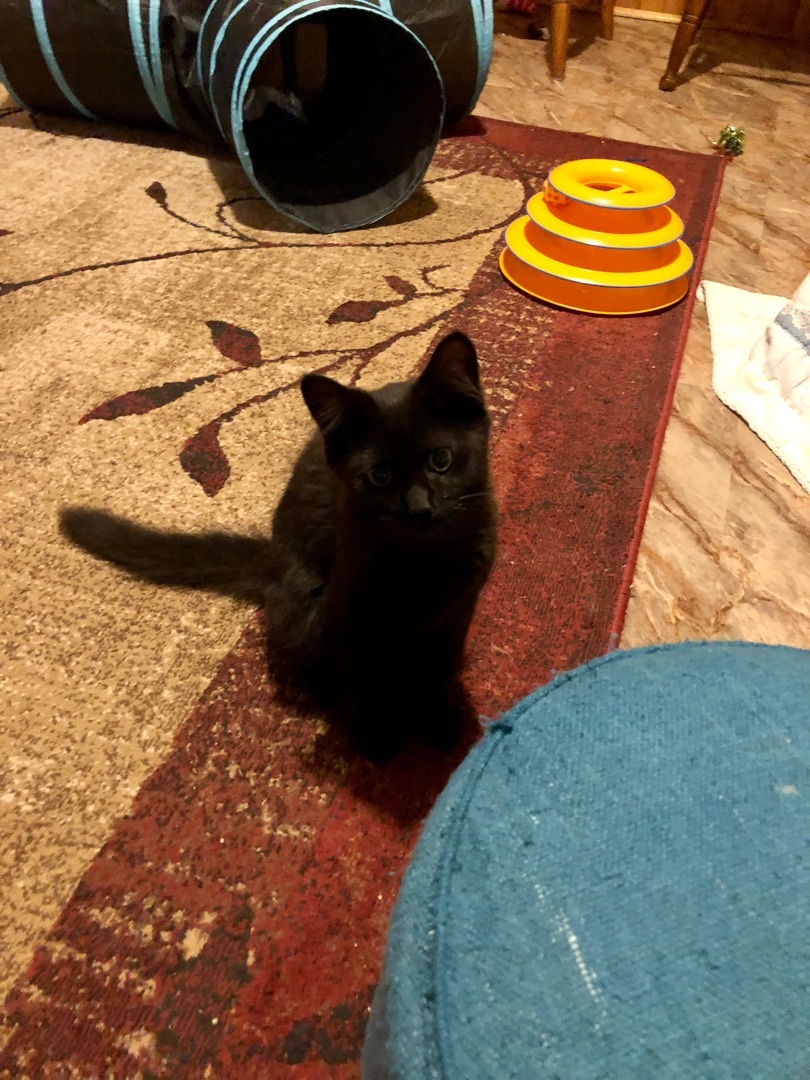 Pepper is a solid black, 6 month old kitten. She is still working on her socialization skills and can be a bit skittish. She doesn’t enjoy being picked up but will tolerate it. She is also good motivated and loves squeeze ups. This is the best time to give her some pettings. Pepper will do best in a home with no young children. Thank you for your consideration to adopt a kitten through Scruffy Paws Animal Rescue!\xa0 If you are inquiring through this post, he/she is still available. Please try to refrain from emailing for his/her status. You may complete our adoption application any of the following ways: -Through our website - www.scruffypawsanimalrescue.org - Email a copy to scruffypawsanimalrescue@gmail.com - Drop off a hard copy to one of our store locations (Petsmarts located in Johnston and North Smithfield)\xa0 - Mail it to: Scruffy Paws Animal Rescue 2944 Post Rd, Warwick, RI 02886 Our adoption fee to adopt a kitten includes the following vetting, spay/neuter, rabies vaccinated, distemper vaccinated, combo tested (or proof of moms test), flea treatment, dewormed, and microchip. \xa0 Adoption Process:\xa0 - Adoption Application - Vet Reference (Please call your vet ahead of time to give permission to release records to our adoption team.) - Home visit (Please make sure you are located in our vicinity, we are based out of Warwick, RI.) - If renting, landlords contact information must be provided so that our adoption team can seek approval. FYI: Kittens are located in foster homes.\xa0 An adoption application must be approved prior to meeting our kittens.\xa0 This is for the safety of our fosters and potential adopters.\xa0\xa0 We strongly recommend submitting an adoption application before requesting information about specific kittens.\xa0 Kitten statuses change daily.\xa0 No worries!\xa0 We are a very busy shelter rescuing kittens/cats quite often and they all need loving homes! *Our shelter is NOT open to the public, again most of our kitties are placed in foster homes with the exception of a few that are at the shelter awaiting for a foster home.