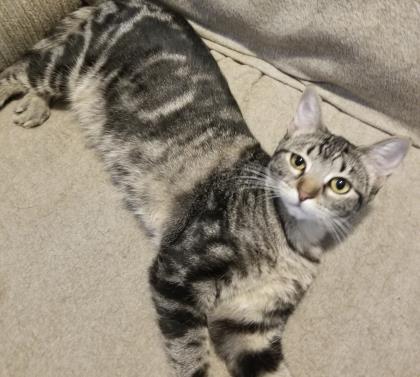Meet Raya a beautiful Marble tabby born mid April 2021. Raya is sweet but spunky! She is a bit shy at first, but does come around to know and love pets and chin scratches! Raya loves to play and has lots of energy to do so! She loves to chase wand toys and balls and anything with feathers! She can be quite silly, and entertaining but does have a sweet side as well, and would like to be a part of anything that is going on. She doesnt want to miss out, and you will not be able to resist her sweet face! Shell do well with other friendly pets and gentle kids. She is litter box trained. You must submit an application to be considered for adoption. We cannot reply to all inquiries, but respond to all no obligation applications. Fill out an application at https://webportalapp.com/sp/login/savinghopeanimalrescue-catapplicationportal It doesnt obligate you, but it is the first step. Fee is $150 which includes first years vaccinations, combo testing, spay and microchip.