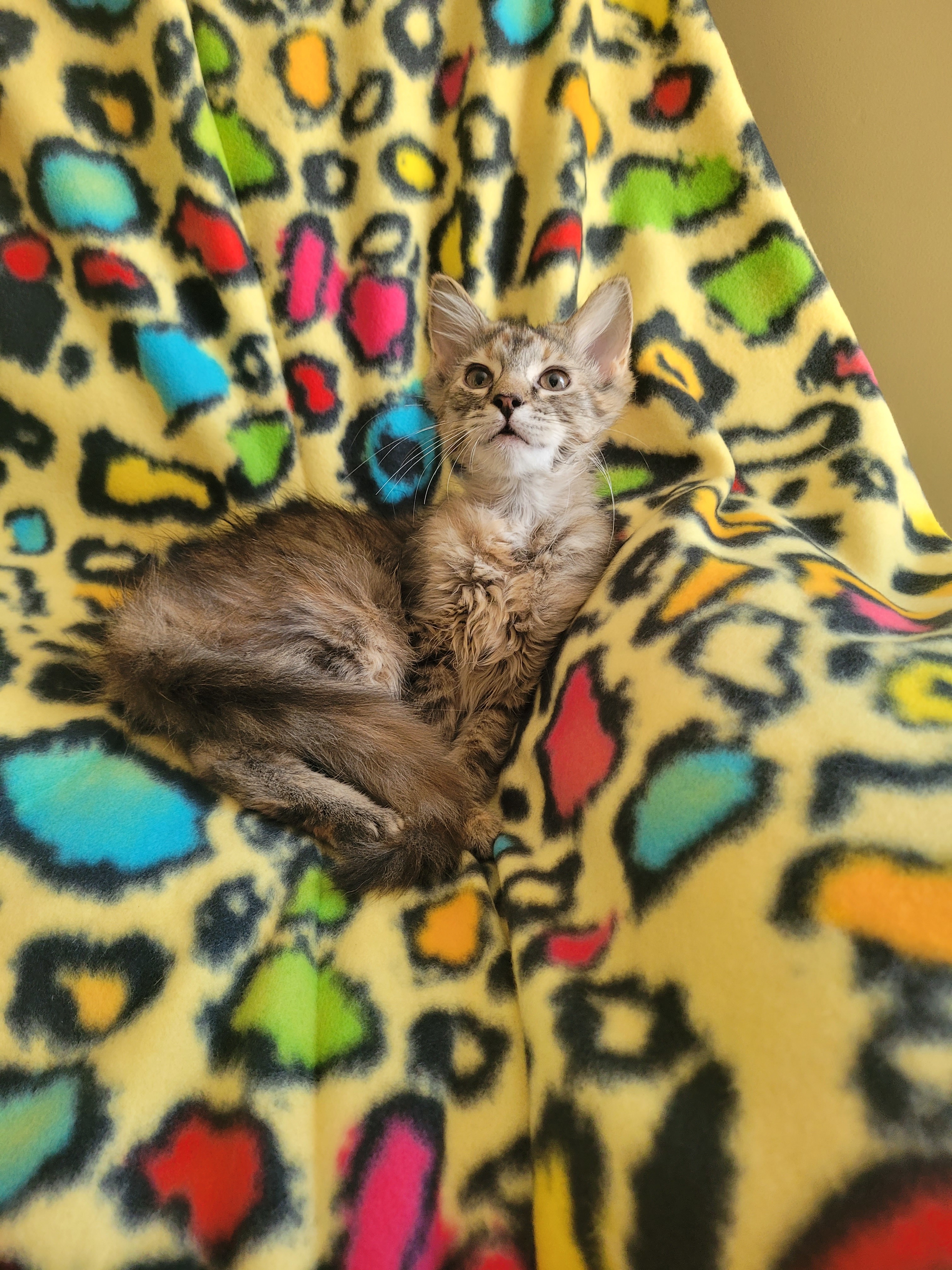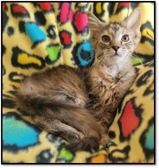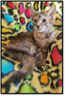 Mandy is a stunning, curious kitten who explores and finds the toy in everything, She is very busy and especially loves the laser toy.