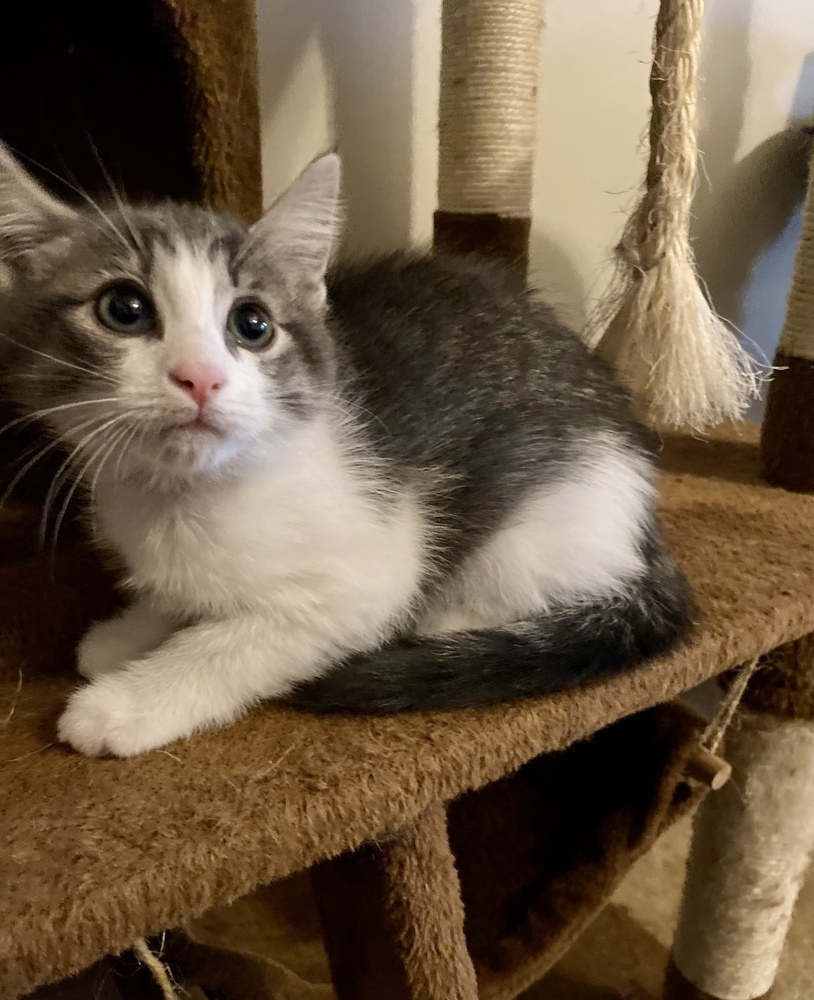DOB 06/03/2022 Kelly is the sweetheart of the group. She enjoys curling up in your lap and giving kisses. She also enjoys playing with her siblings and would do best in a home with another young cat to play with.