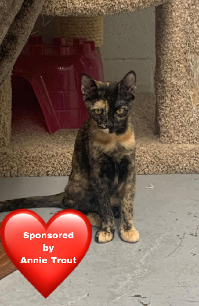 Are you a "Tortie lover?? Well, Poppy is a human lover and is looking for a BHF - best human friend!! Poppy was born at the shelter on 4/4/22 to her mom, Dahlia. She is now ready for her next adventure...a furrrever home and a family of her own! As most kittens do, Poppy loves climbing cat trees, running through kitty tunnels and chasing any toy that glides across the floor or hangs from a string like its flying through the air!! She loves rolling in catnip and snuggling up for naps! If youre interested in adopting one of our animals please put in an application at: https://petstablished.com/adoption_form/25348/generic