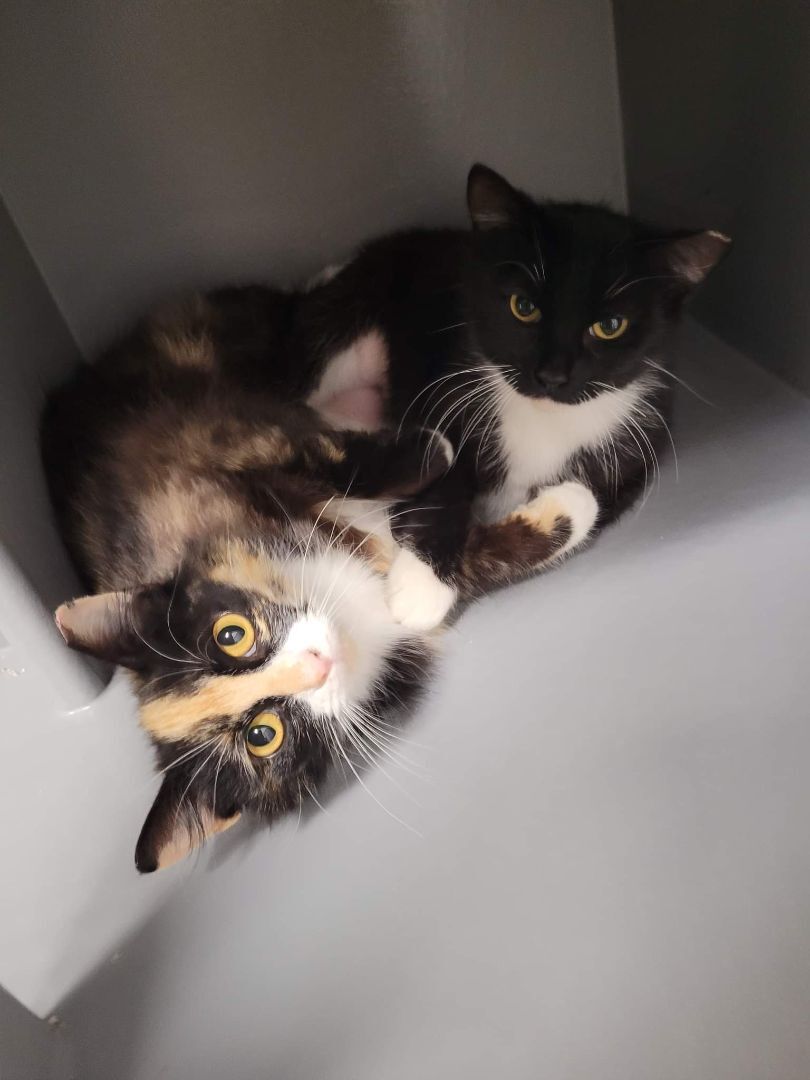 Pretty Girl is very shy and will need someone to give her time and patience to adjust to her new home. She will reward you with lots of love in the end. Her and her sister, Sweetie Pie, rely on each other for comfort and are up for adoption as a bonded pair $100. Apply to adopt here! https://www.shelterluv.com/matchme/adopt/PAE/Cat